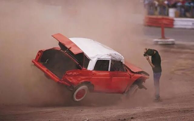 15、捕捉到翻滚汽车的摄影师。