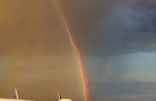 16、同时出现的闪电和彩虹。