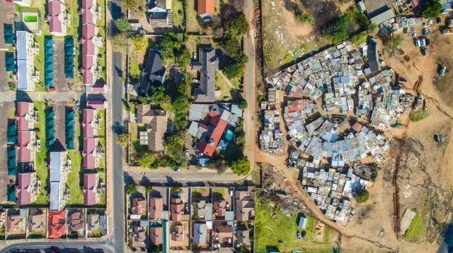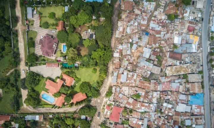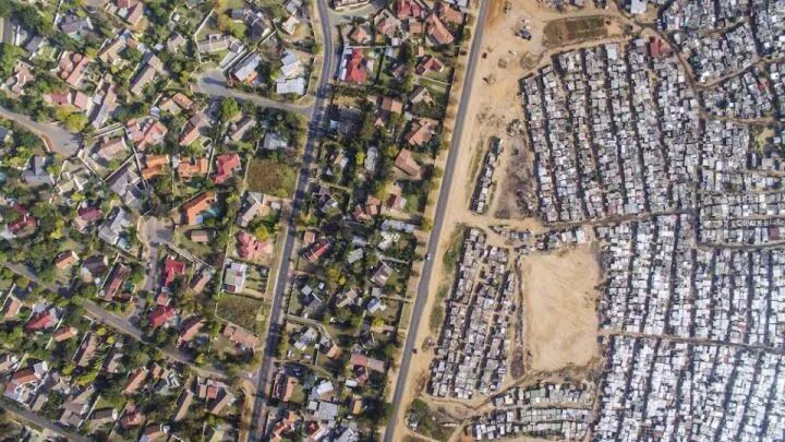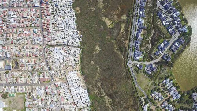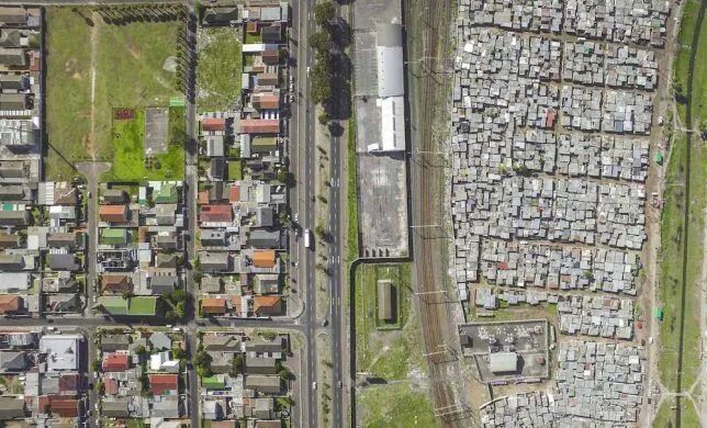 这两者不应该存在同一个画面的事物,却出现在同一个画面中,让人十分触动,虽然,这些房子只有一墙之隔,却有一个无法逾越的鸿沟,下面就让我们来欣赏一下约翰尼·米勒的摄影作品吧。