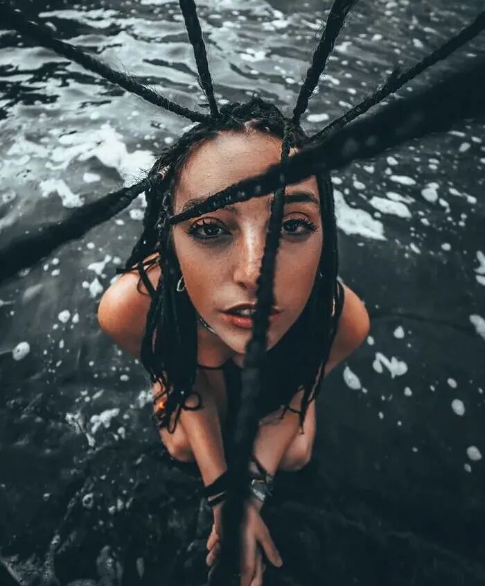以这幅照片为例,我们看到拍摄的人物非常具有时尚感,像是一个时尚大片,画面中的人物头发也都是竖立起来的,这幅照片许多人都认为是摄影师将头发PS上去合成的效果。