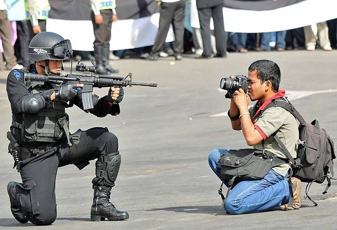 新闻摄影师,在最混乱的地区,在面对危险和枪口时,依旧可以淡定的拍摄。