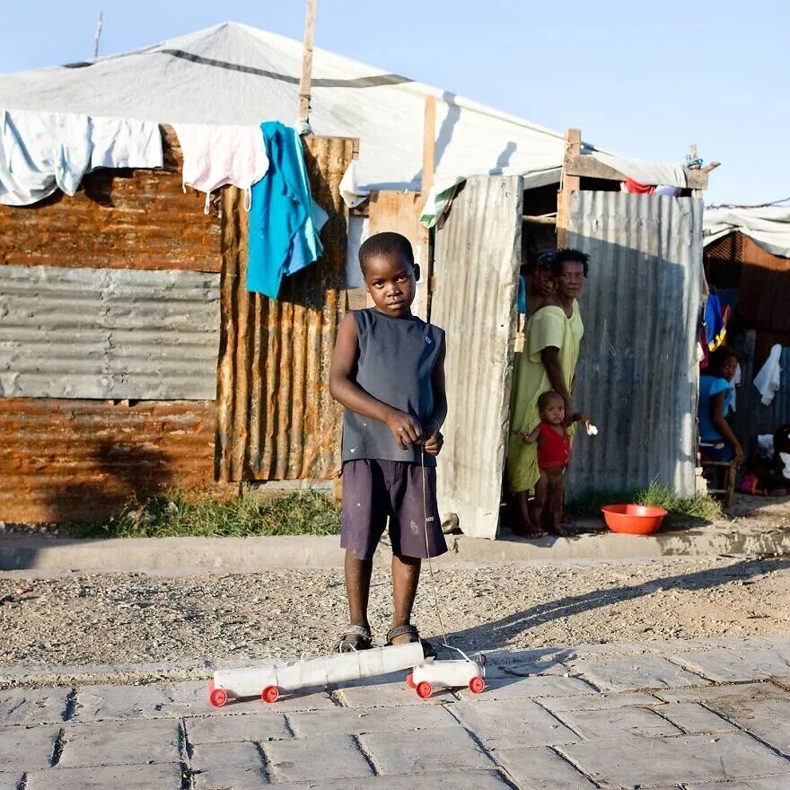 海地太子港,5岁的男孩Rivaldo Fesna和他的自制玩具。