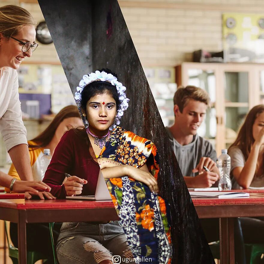 一位驻伊斯坦布尔的数字艺术家乌尔加伦齐就创作了这样一组令人心碎的作品,通过这些拼贴画,艺术家向我们展示了世界不同地区之间的孩子们,有着多么强烈的对比,当你每天为一些鸡毛蒜皮的事情斤斤计较的时候,有的孩子正在经历着贫穷、寒冷和饥饿,他们的要求是那么简单,仅仅是一件衣服,一餐饱饭,或者一个简单的拥抱。