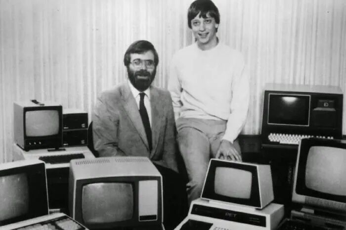 1975年,比尔·盖茨和保罗·艾伦的朋友在一个车库中,创立了Microsoft(最初名为Micro-Soft,用于微处理器和软件)。