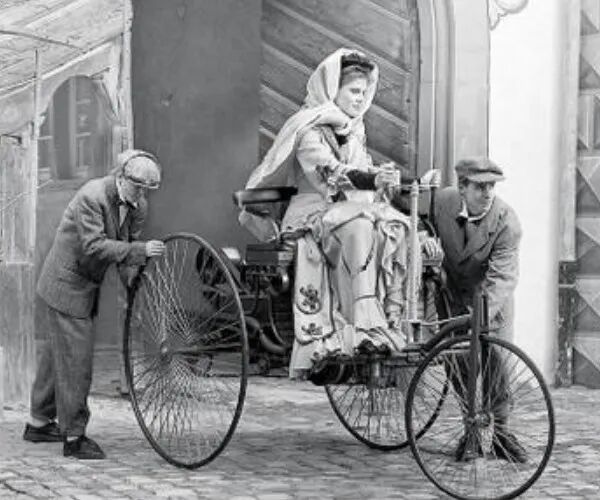 奔驰先生的妻子在驾驶奔驰车,拍摄于1886年。