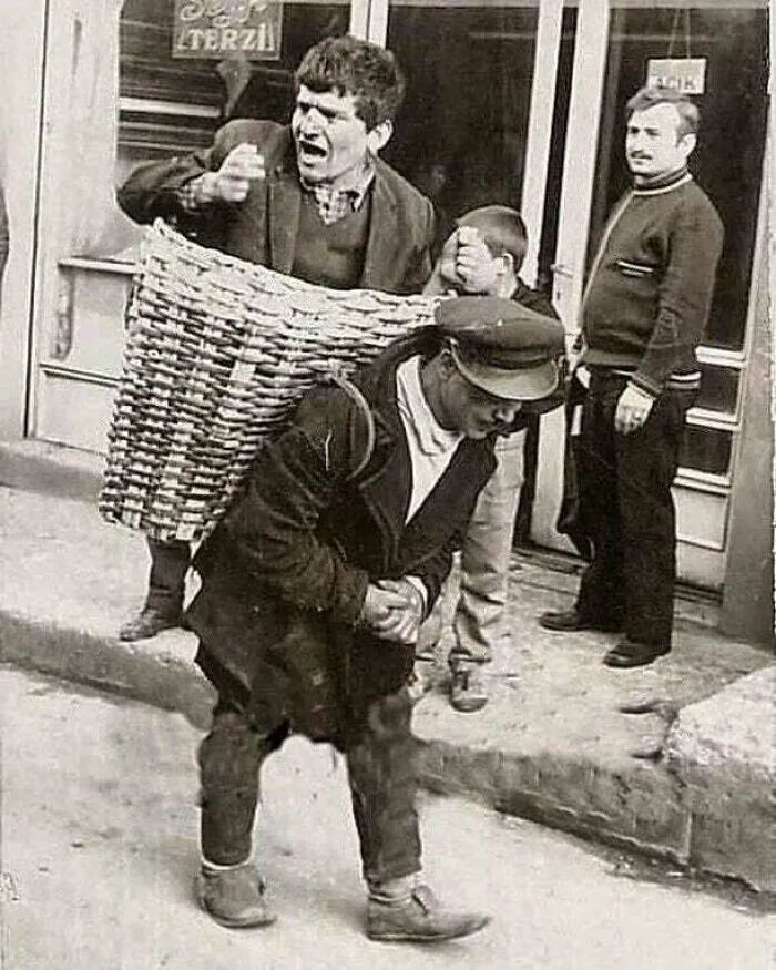 世界上最早的“代驾”被称为酒篮,酒吧会雇人将喝醉的人带回家,照片拍摄于1960年。