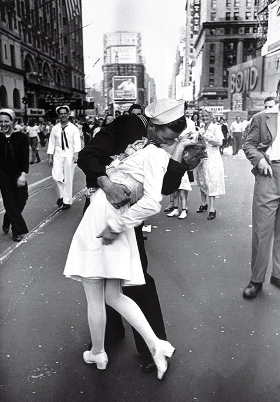 时代之吻,被誉为最经典的照片之一,这幅照片拍摄于1945年的时代广场,一位得知战争胜利的水手,对一位并不认识的护士深深吻下去。