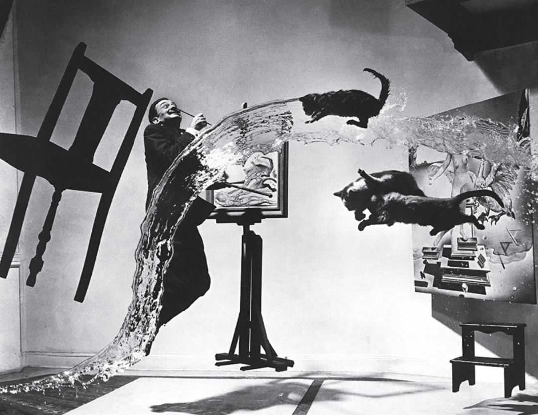 超现实主义画家达利的照片也是超现实的,这幅照片悬浮的效果,都是由助手扔出来的,这幅照片一共拍摄了6个小时,反复试验28次才拍摄成功。
