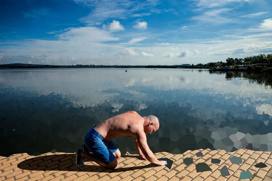 超现实主义摄影,重要的并不是按下快门的一瞬间,而是构思需要创作的画面,拍摄超现实主义的摄影,就像是描绘一幅画作一样,需要做许多准备工作,有时候一个作品需要构思一两天的时间,有的作品则需要不断构思好几年。