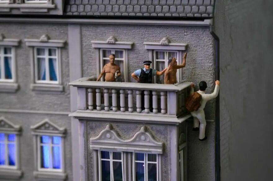 有不少艺术家,就以微型人物为题材,创作出一个个非常有趣的作品,这些还没有手指大的卡通小人,在我们这个世界冒险,任何东西对它们来说都非常庞大,欣赏这些作品仿佛让自己也带入到这些卡通小人中,幻想着自己在巨大的环境中进行冒险,这种感觉非常美妙。