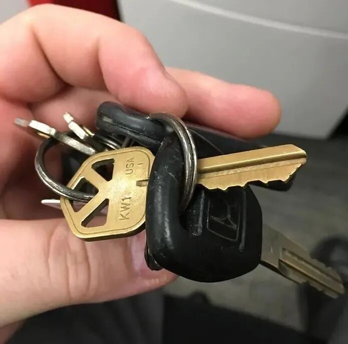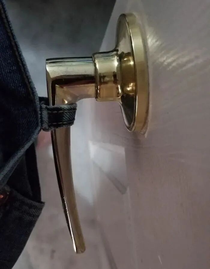 8、门把手恰巧穿过牛仔裤的腰带袢。