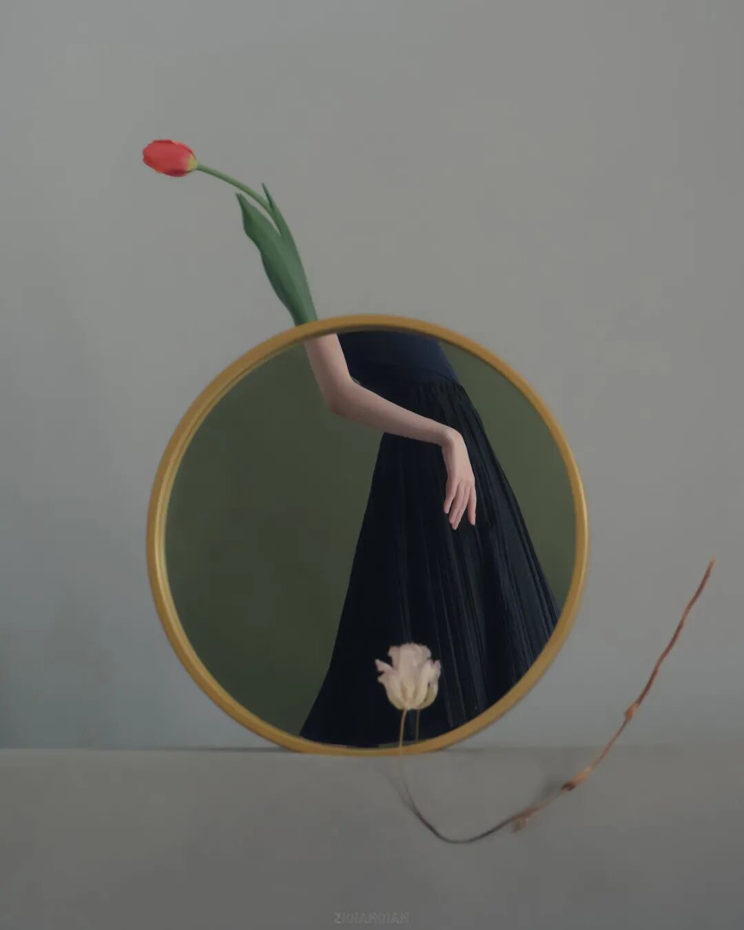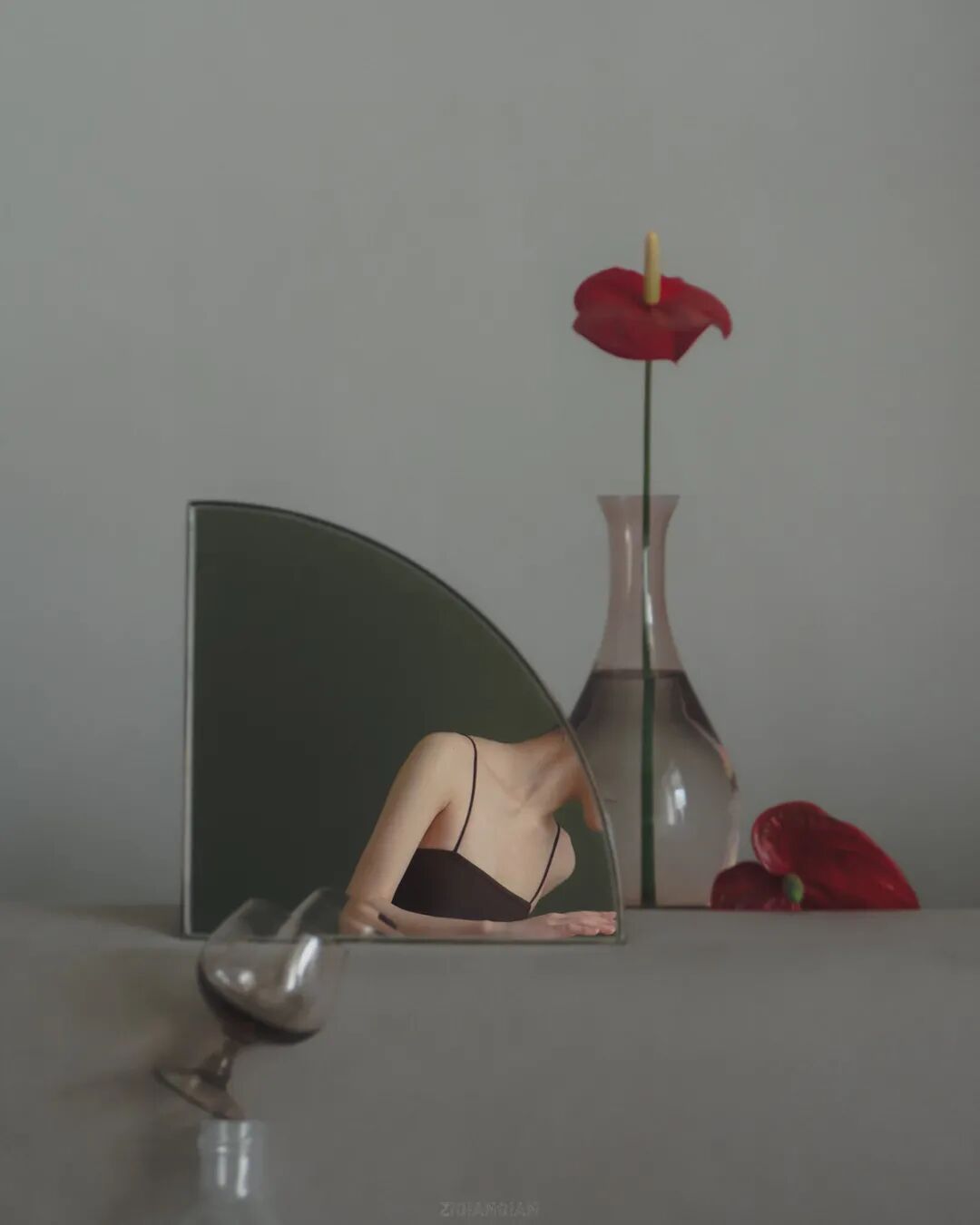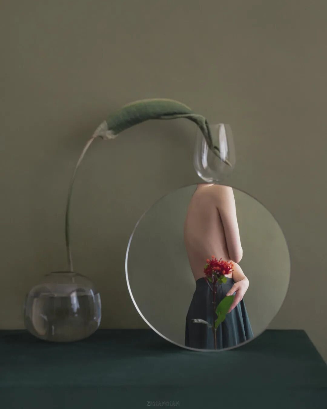 刘自谦来自中国上海,她的摄影作品之所以可以给人带来诗意的感觉,这是因为她运用了一个小道具,这个道具就是镜子。通过镜子折射,呈现出错综复杂的场景,让人看到类似超现实的画面。