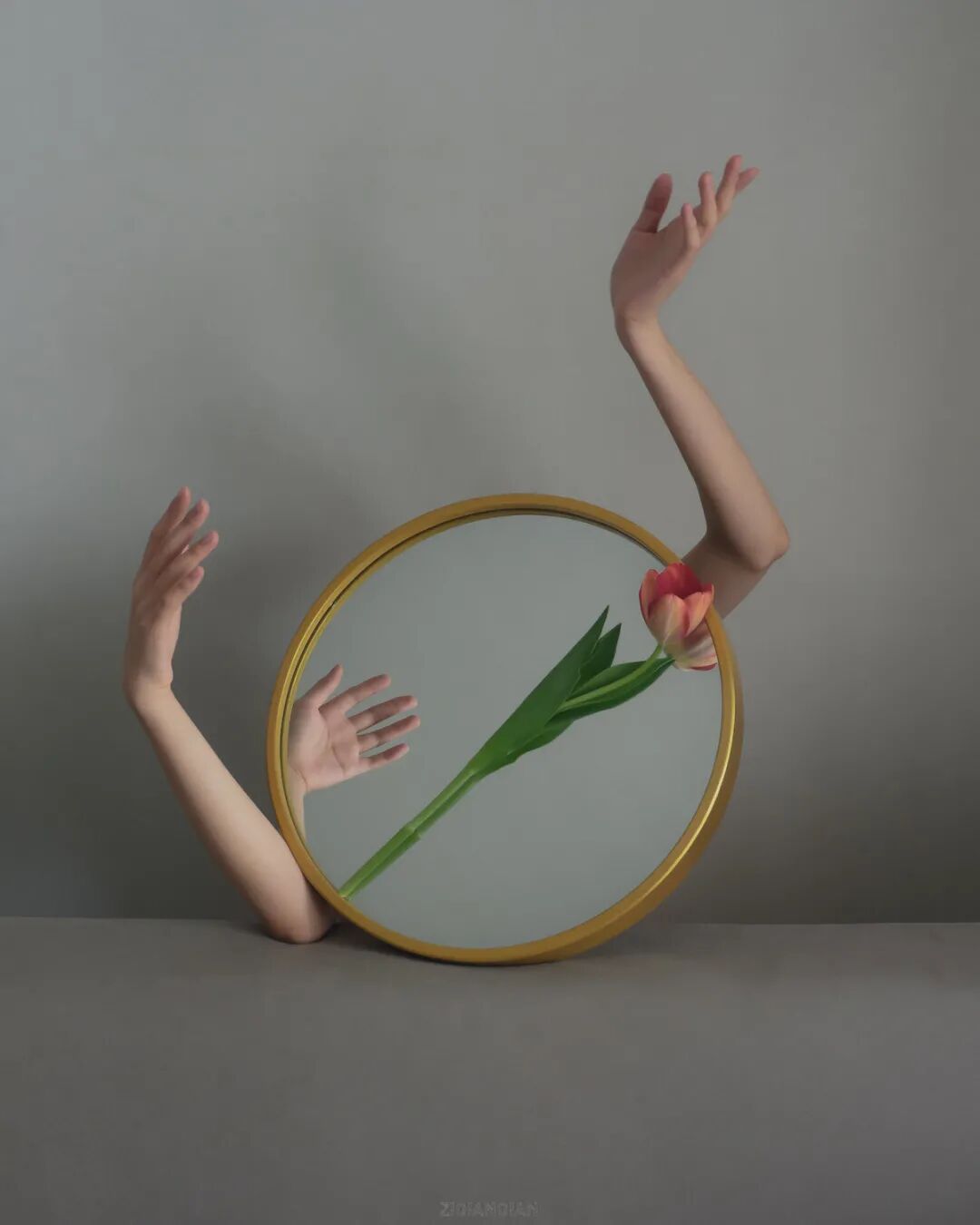 这些富有诗意的照片,刘自谦说,镜子中的图像代表着是她理想的世界,但是,镜子的世界与现实世界并不能交融在一起,另外,她想表达的另一个观点则是“人与自然的共生”。