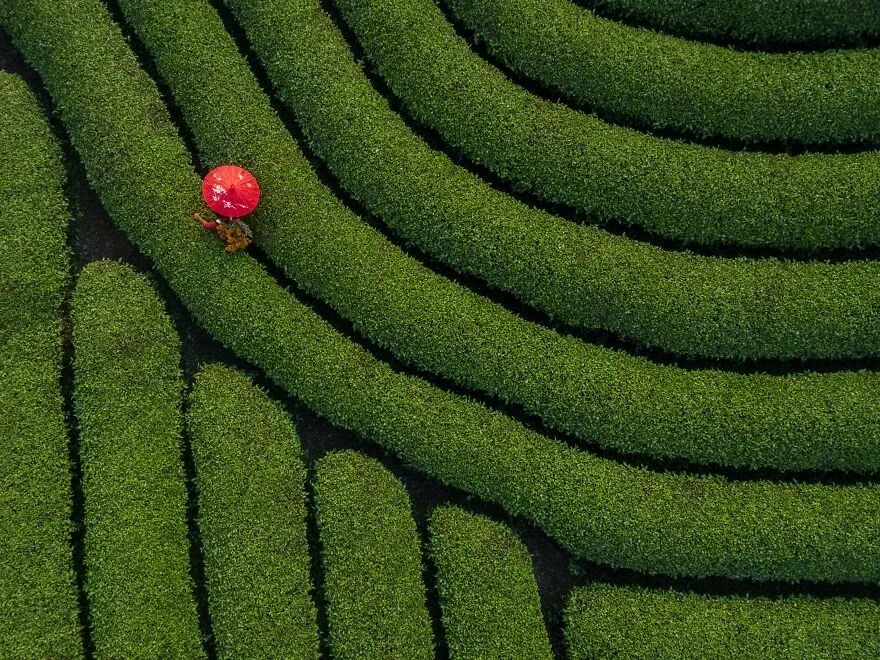 2、用无人机拍摄的茶山。