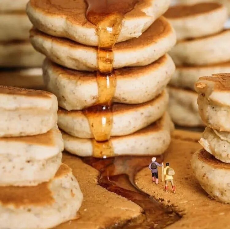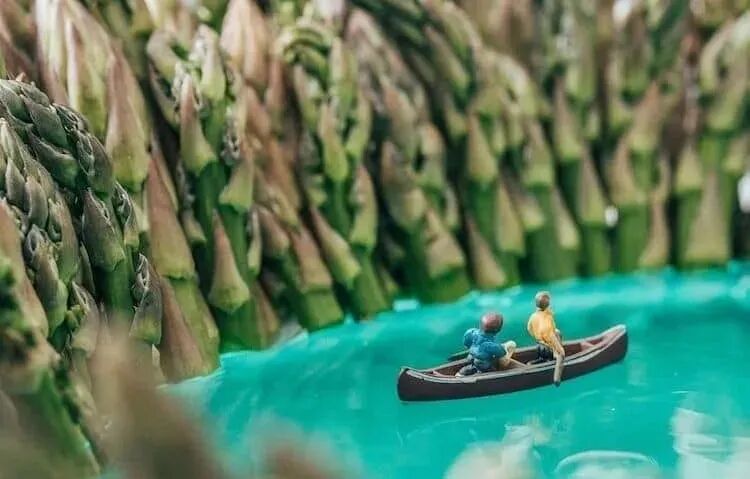 艾琳·沙利文说创作这些微缩摄影可以让自己保持工作的状态,同时锻炼自己的想象力和摄影水平,一个西蓝花就是一座森林、一把青菜就是一个田野,一叠煎饼就是一座峡谷,这些微缩场景,让艾琳·沙利文足不出户也可以体验到旅行摄影的乐趣。