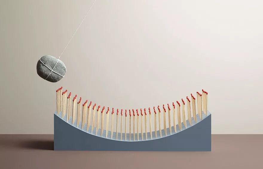 凯尔·比恩从事摄影工作已经超过了10年,他的摄影系列作品多达几十种,每一个系列都非常精彩,且别具匠心和创意,不过,小绛最喜欢凯尔·比恩的摄影系列,就是可以让人预知危险的摄影作品,我们每个人在生活中都会遇到各种各样的意外状况,比如说:酒杯即将从桌子上跌落、气球快要被针戳破、椅子将要翻倒等等,这些状况会让我们瞬间清醒,让我们心跳加快,因为我们知道在下一秒它们会发生什么变化。