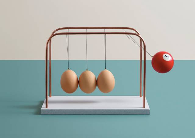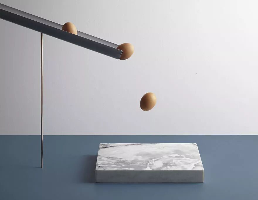 11、正在砸向鸡蛋的桌球,仿佛让人可以预知到鸡蛋破碎的场景。
