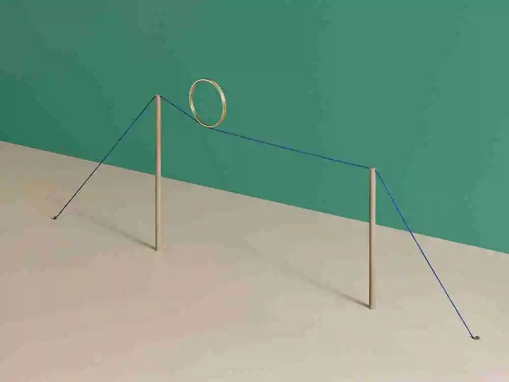 2、在一根线上滚动的铁环,让人情不自禁地紧张起来。