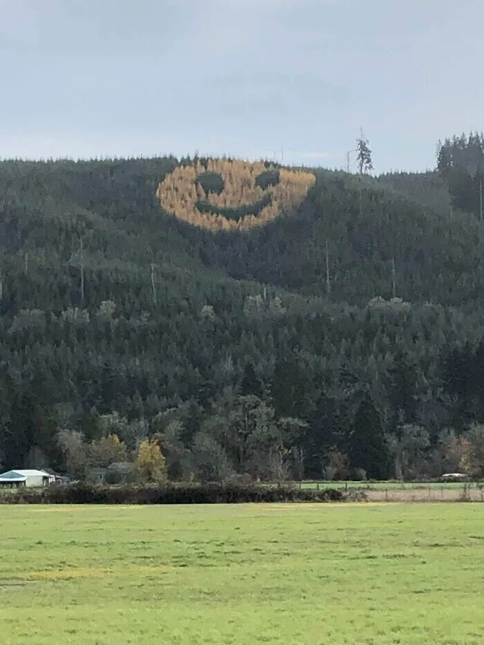 3、每到了秋天,这个小山上就会出现笑脸符号。