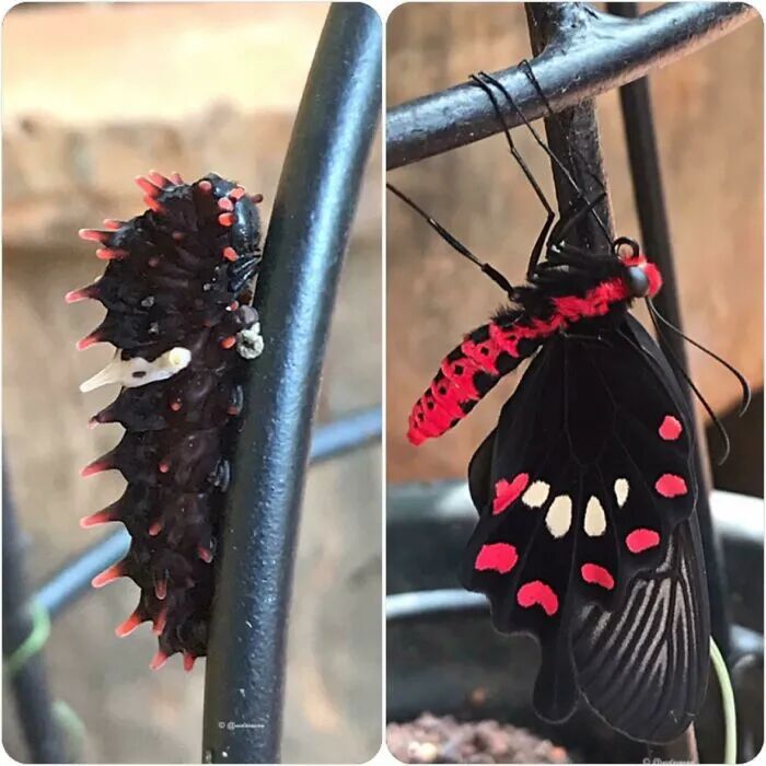 11、黑红色的毛毛虫,变成蝴蝶后的模样。