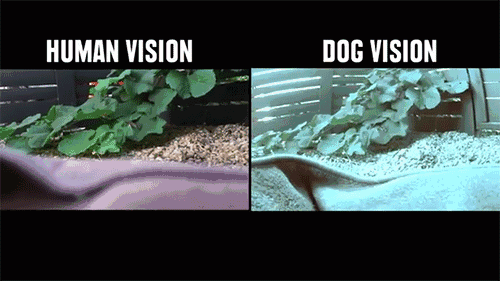 在一次试验中,实验者就将人类的眼睛和动物的眼睛呈现出来,做了一下对比,我们可以清晰的看到,人的视角和狗的视角呈现出来的画面完全不同。狗的视觉看似没有我们艳丽但在清晰度上却远胜人类。