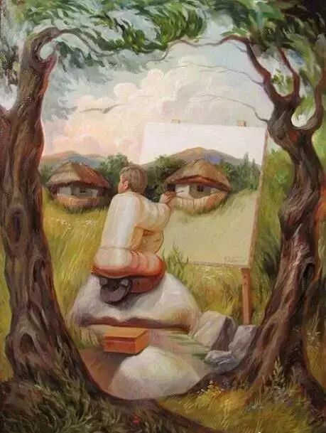 那么接下来,小酱就跟大家分享一组利用错视觉绘画的艺术,这些画利用了空间与平面相融合,每一幅画都充满巧思,你能看出来画面中隐藏起来的视错觉部分在哪里吗?