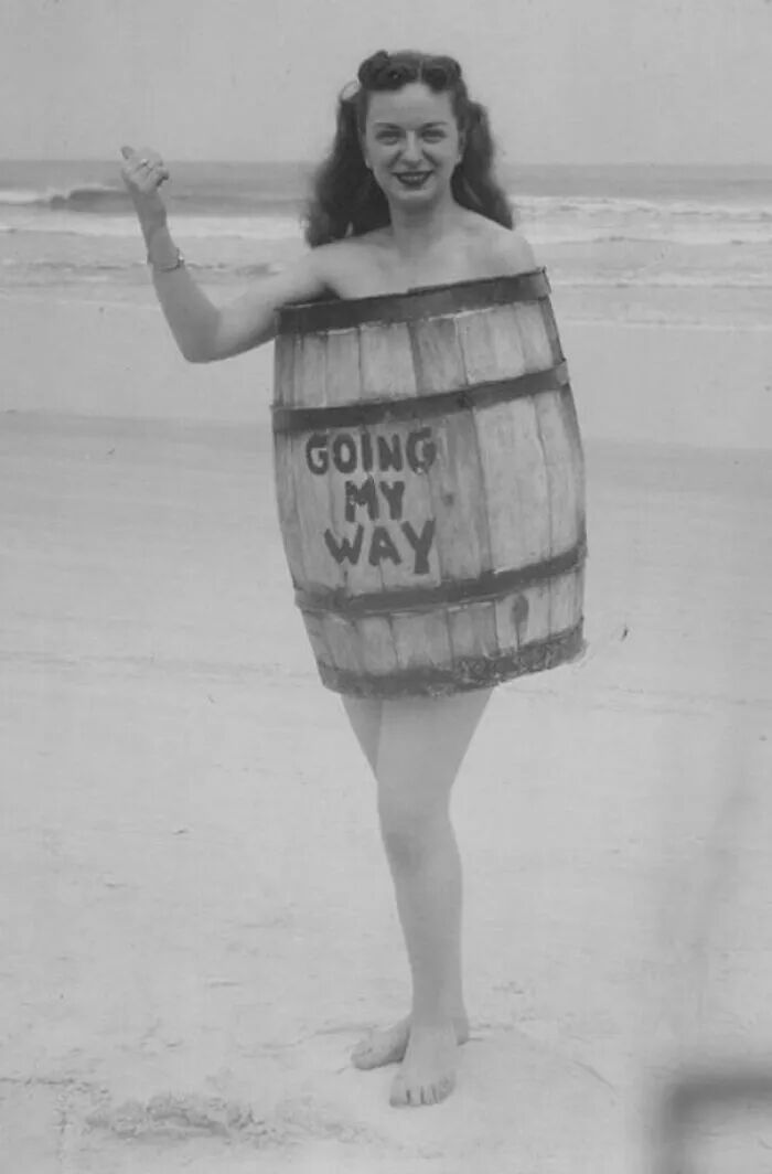 几个摩登女郎在海滩上听收音机,大约拍摄于1940年。
