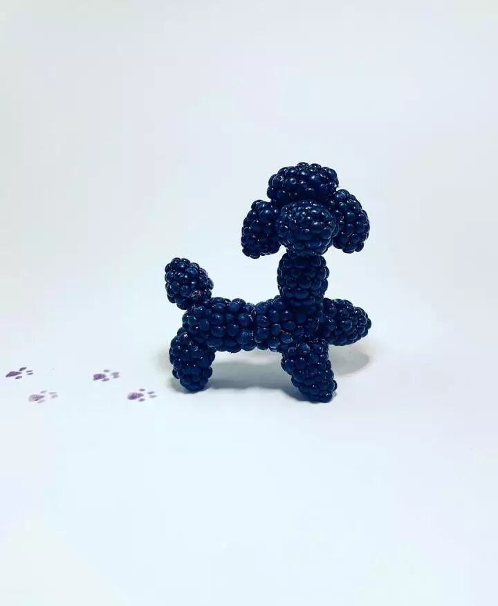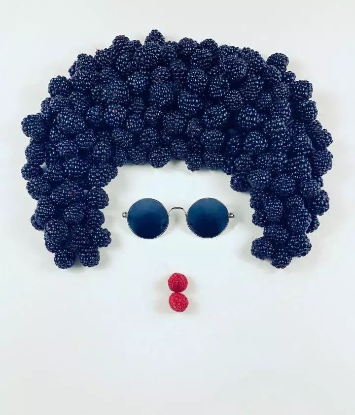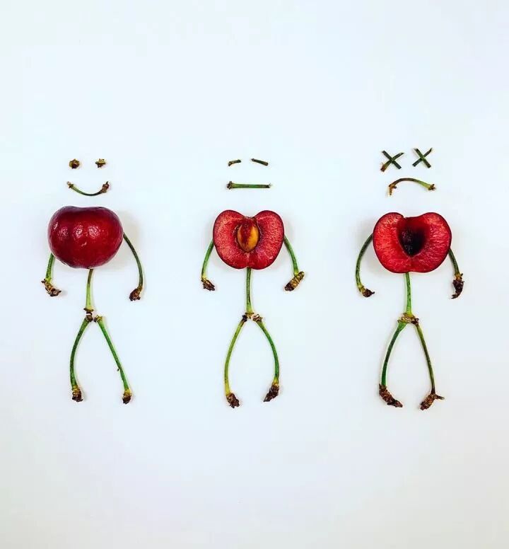 蓝莓、香蕉、菠萝、樱桃,不同形状,大小不一的水果,通过本·史密斯的简单组合,水果都成精了,看到这些作品,让人都会忘记这些是用水果制作而成的。