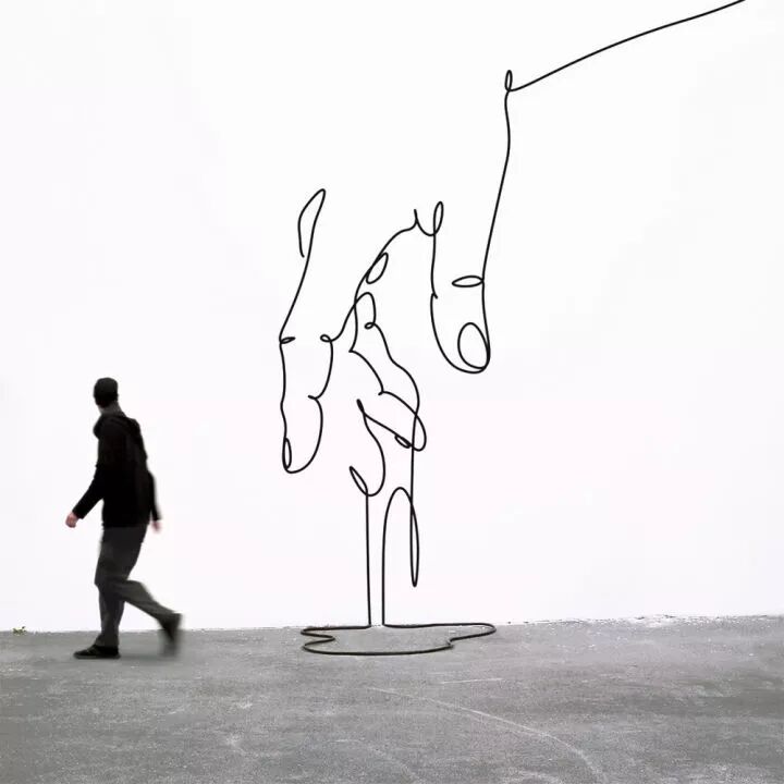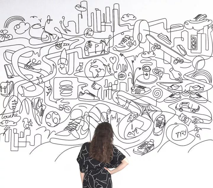 当然,在绘画的应用上,也有着众多追求极简的艺术家,比如来自法国的阿卡,他用一根连续不断的线,凭借独特的单线绘图,创作出了征服无数人的二维极简主义艺术。