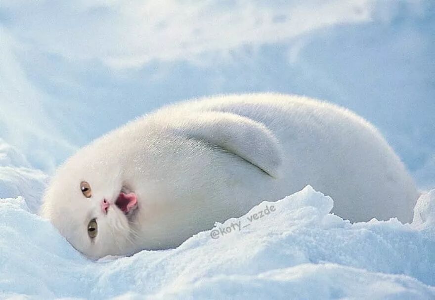 最近,一位资深的爱猫人士就制作了一系列合成图片,他将猫的模样与各种动物进行融合,甚至还有一些面包、奶油、冰淇淋等食物,这样p出来的“猫”主子依旧十分可爱。