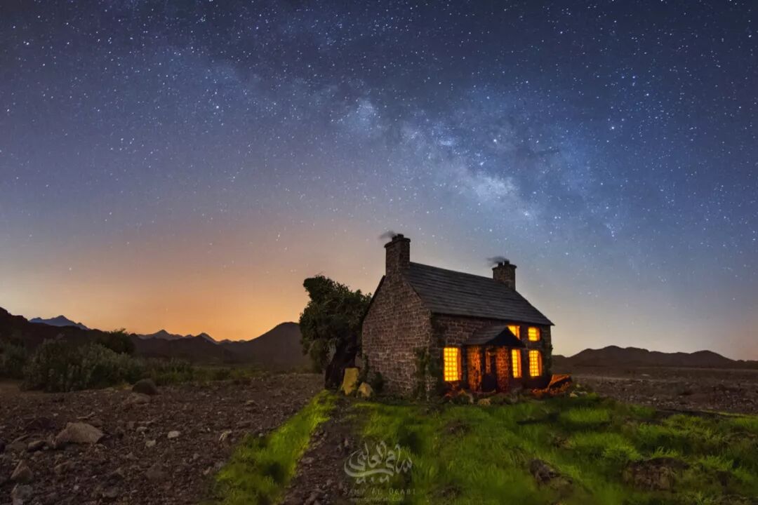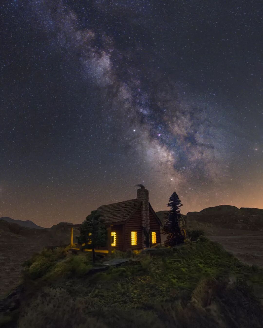 木屋、星星、窗子透出暖暖的光,好一幅浪漫的星空景象。除了小木屋,艺术家萨米·奥拉比还拍摄了灯塔,废弃的小船之类的系列。为了拍出想象中的画面,这位摄影师不辞辛苦,经常带齐装备,驱车近十个小时深入到沙漠等地露营,最终拍摄下这些极具视觉效果的摄影作品。