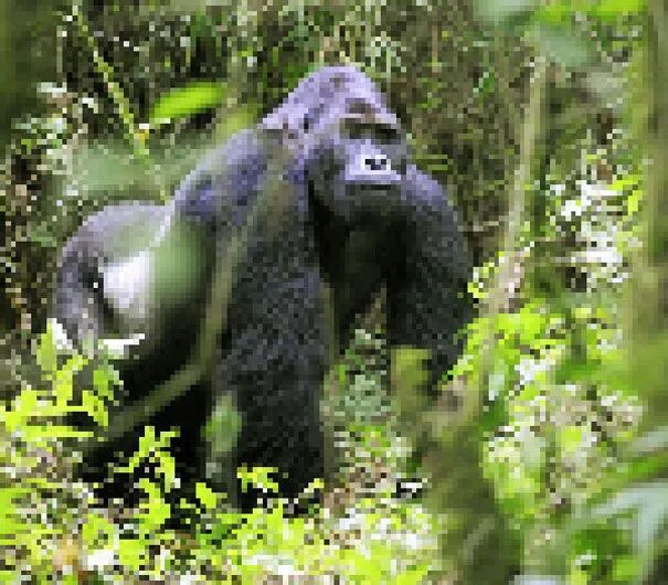 照片越来越不清晰,这同样是一只大猩猩,低地大猩猩,目前约仅存1.7万只。