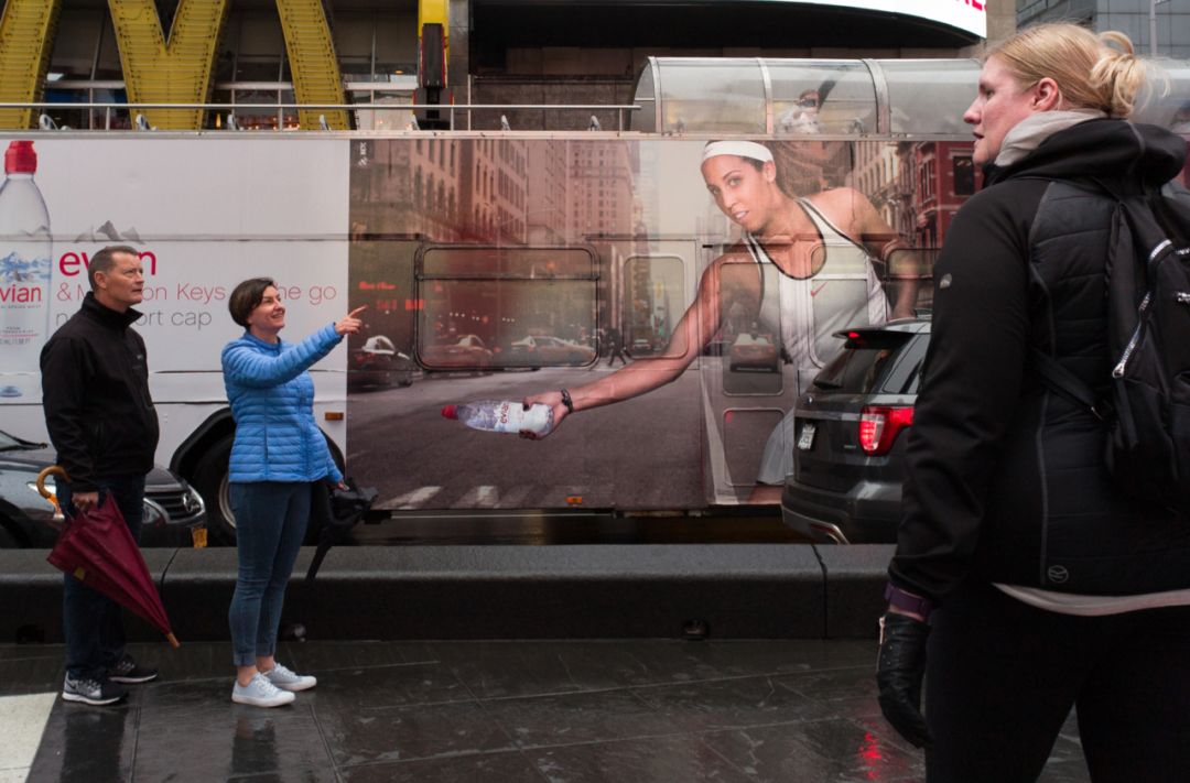 但是希比从中发现了艺术创作的角度,为了拍摄一组充满趣味性的街头照片,他经常在一个广告牌前等待几个小时,当城市的参与者“路人”在经过这个广告牌的时候,会与广告牌产生联系,他们组合在一起,给人一种不可思议的超现实感,而这就是摄影师想要捕捉的瞬间。