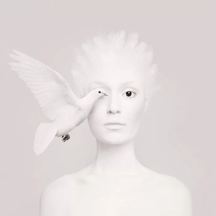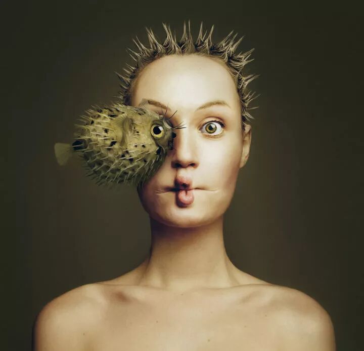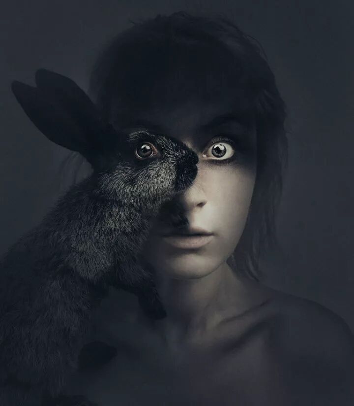 这幅图片的创作者就是来自于匈牙利摄影师和视觉艺术家弗洛拉·博西,她不仅仅创作了这一张作品,还有同样的一个系列,这个系列作品一半是人的面部,一半是动物的眼睛。
