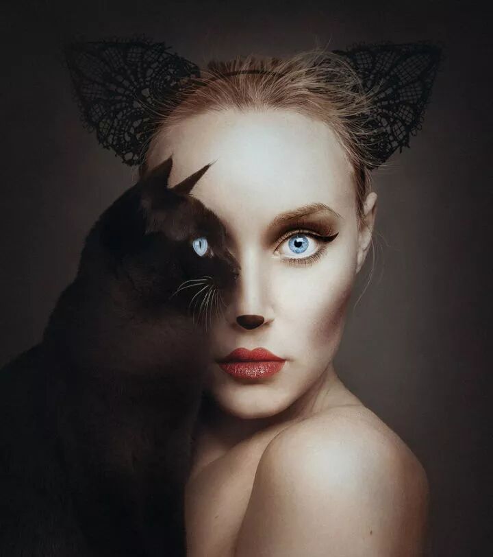 油画酱记得在几年前,一张图片引起轰动,这张极具创意的图片左边是一只黑猫,右边是一个戴着猫耳装饰的女性,图片透露着一丝诡异和难以言表的时尚感。