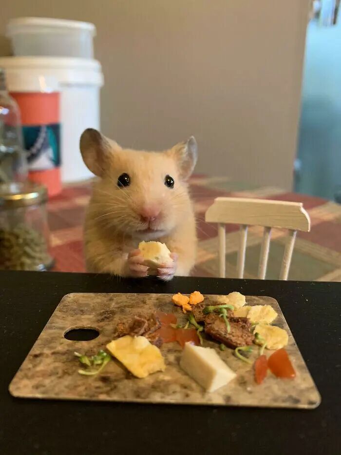 9、吃早餐的仓鼠。