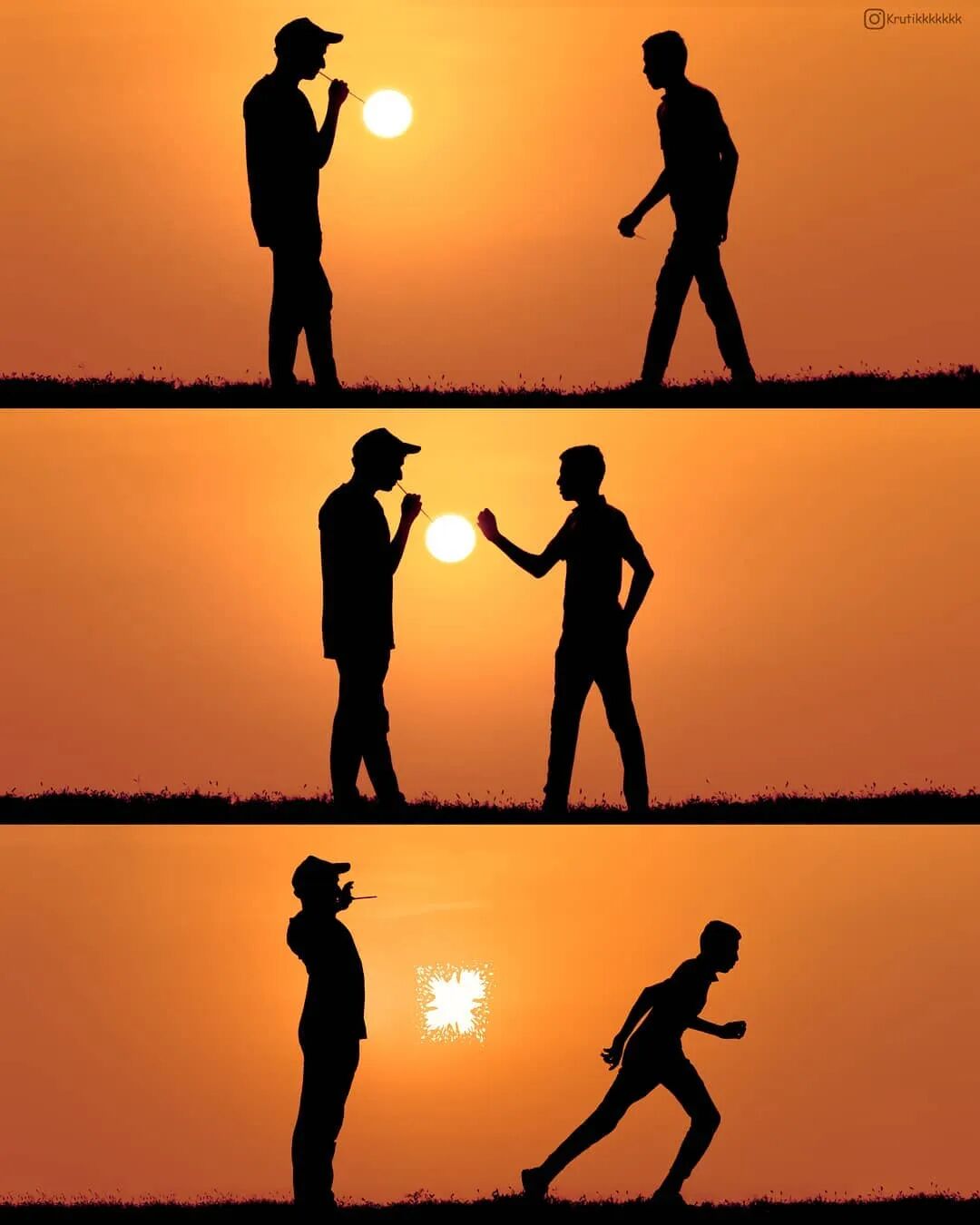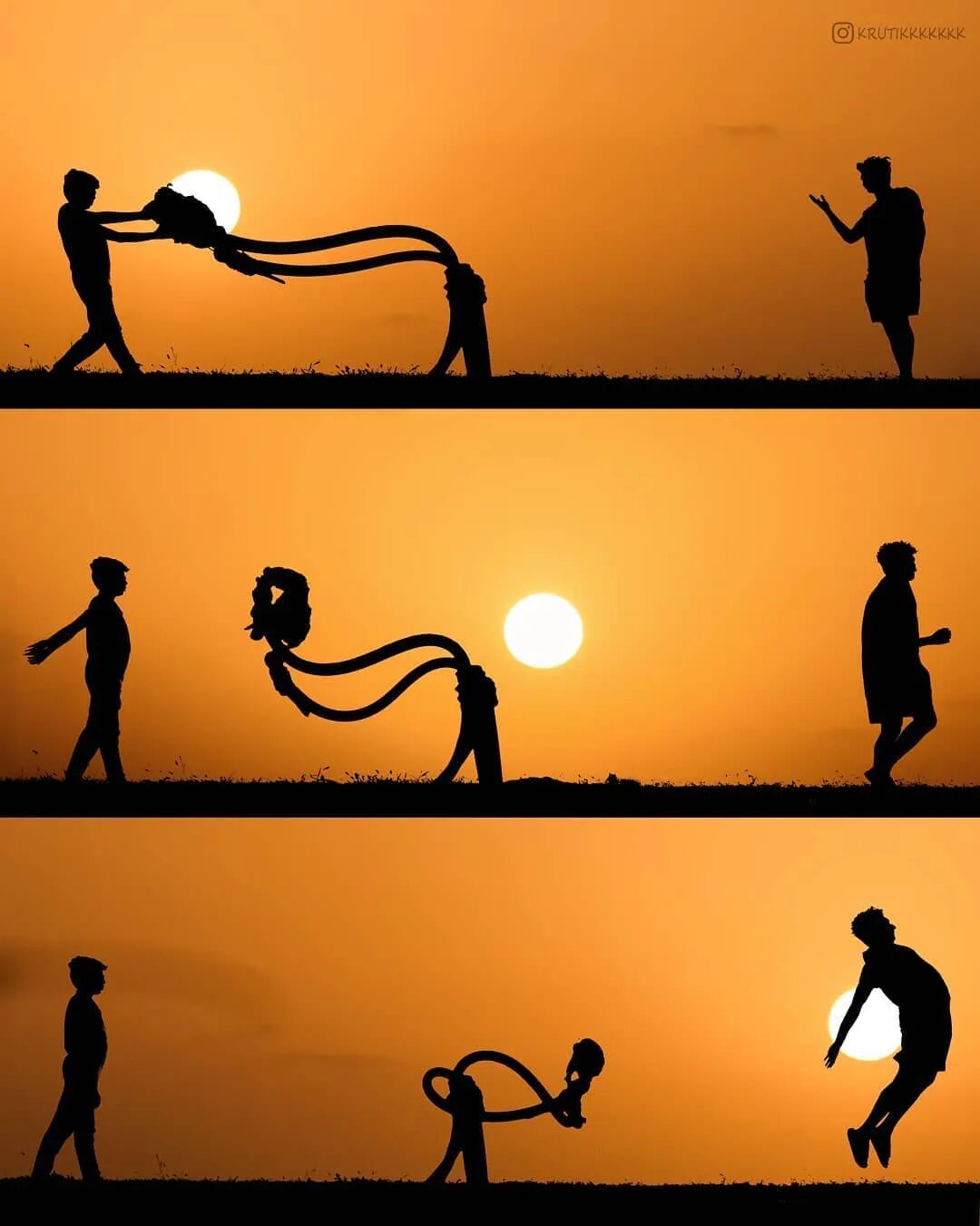 克鲁提克·塔库尔拍摄的题材也十分有趣,关于他拍摄这一题材还有个秘密,其实这个秘密早就公开了。先让我们一起来看看他拍摄的题材,克鲁提克·塔库尔拍摄的内容以落日剪影为主,当太阳即将落下的傍晚时分,迎着阳光,事物会变得像是影子一样黑,通过这种拍摄形式,太阳自然成了他拍摄的道具。在这位摄影师的镜头下,几乎每一幅落日摄影作品,都在讲述一个有趣的故事。