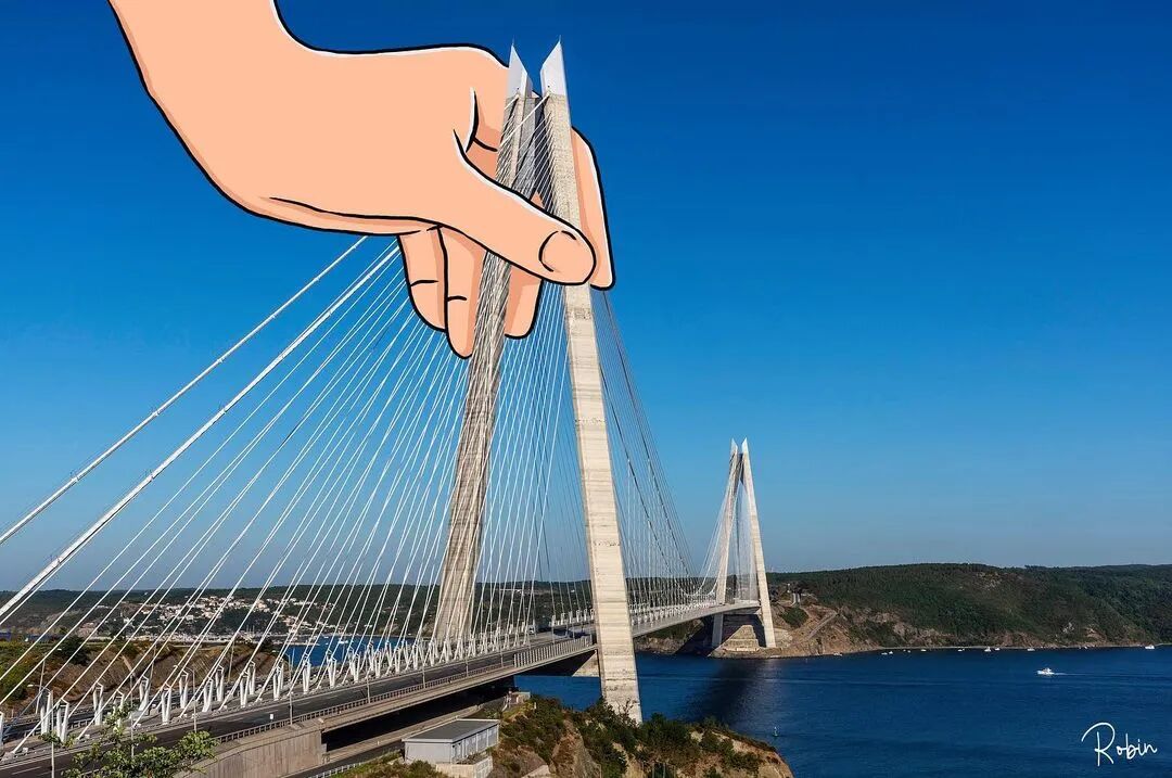 作为一名创意工作者,罗宾·亚拉也曾因为没有灵感而懊恼,随后,他通过观察周围的风景,获得了无限的创意,让整个世界都变成了他的创意来源。在我们大多数人的眼中,桥梁和马路十分平常,高楼与地标建筑也只不过高大了一些,这些景色在罗宾·亚拉的眼里,全部变成另一个模样,它们变化为食物、动物和人物形象,每一个都十分有趣。
