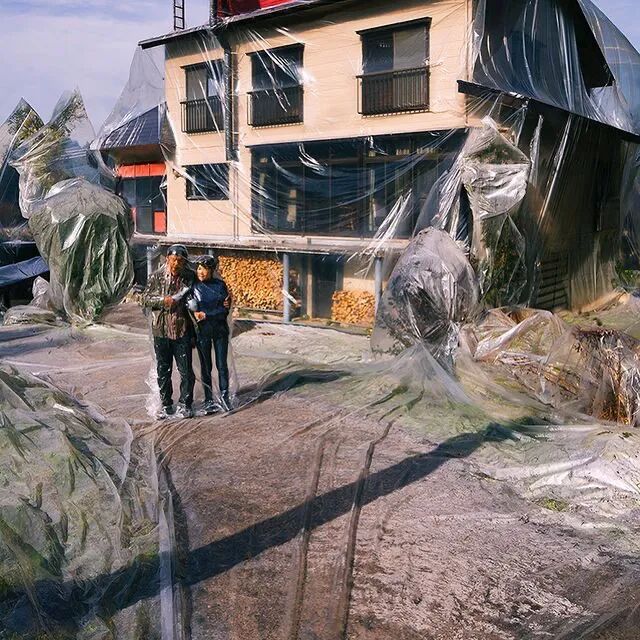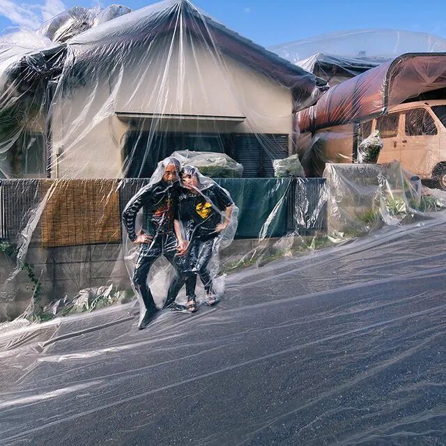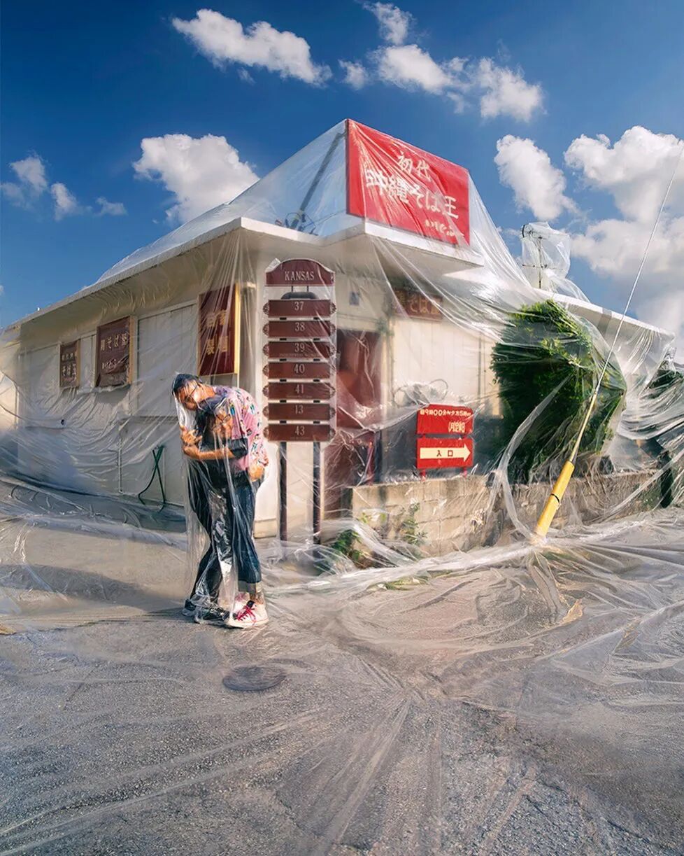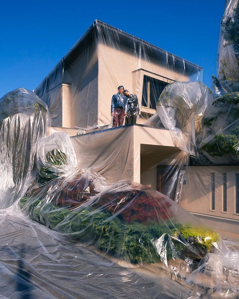 对于这种创意的密封摄影,哈尔延伸出许多不同类型的作品,每一幅作品都十分富有思想性,随着摄影师哈尔的名气越来越大,他的密封系列作品尺寸也越来越大,最近一段时间,这位创意摄影师又制作了一组特别的密封作品,在这组作品中,不仅有情侣被密封在塑料袋中,就连汽车、树木和房子都被塑料袋包裹了起来。