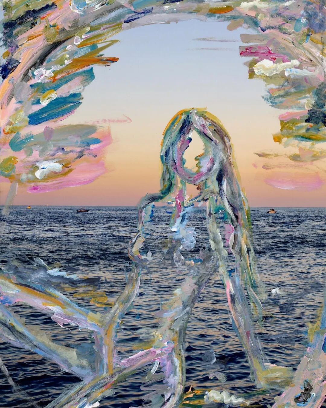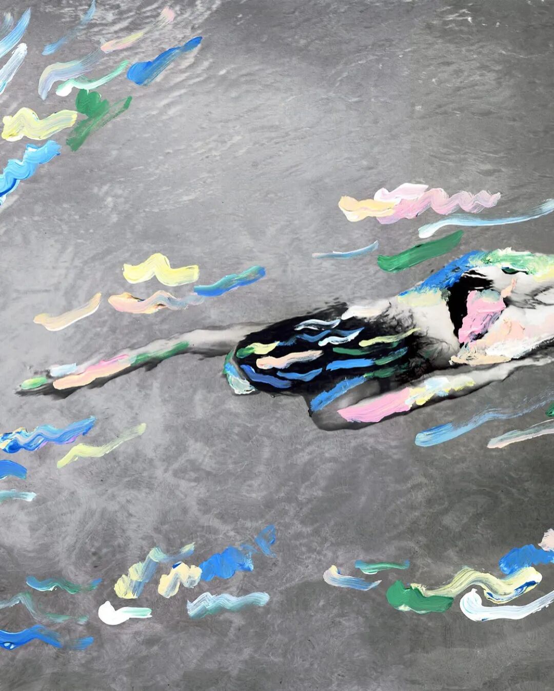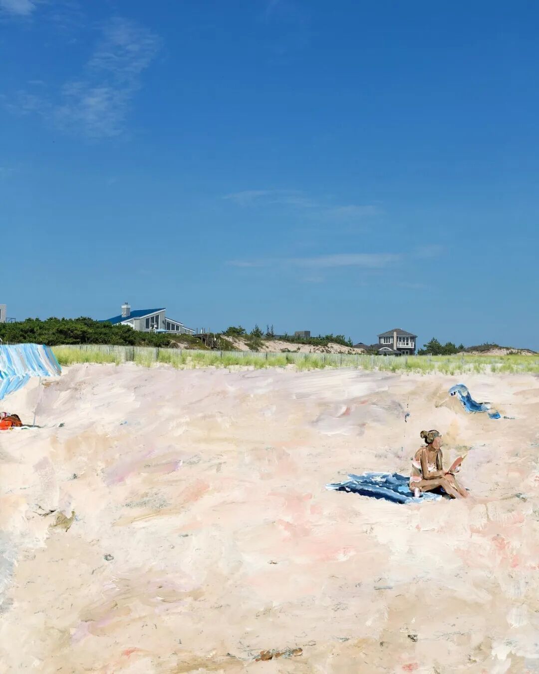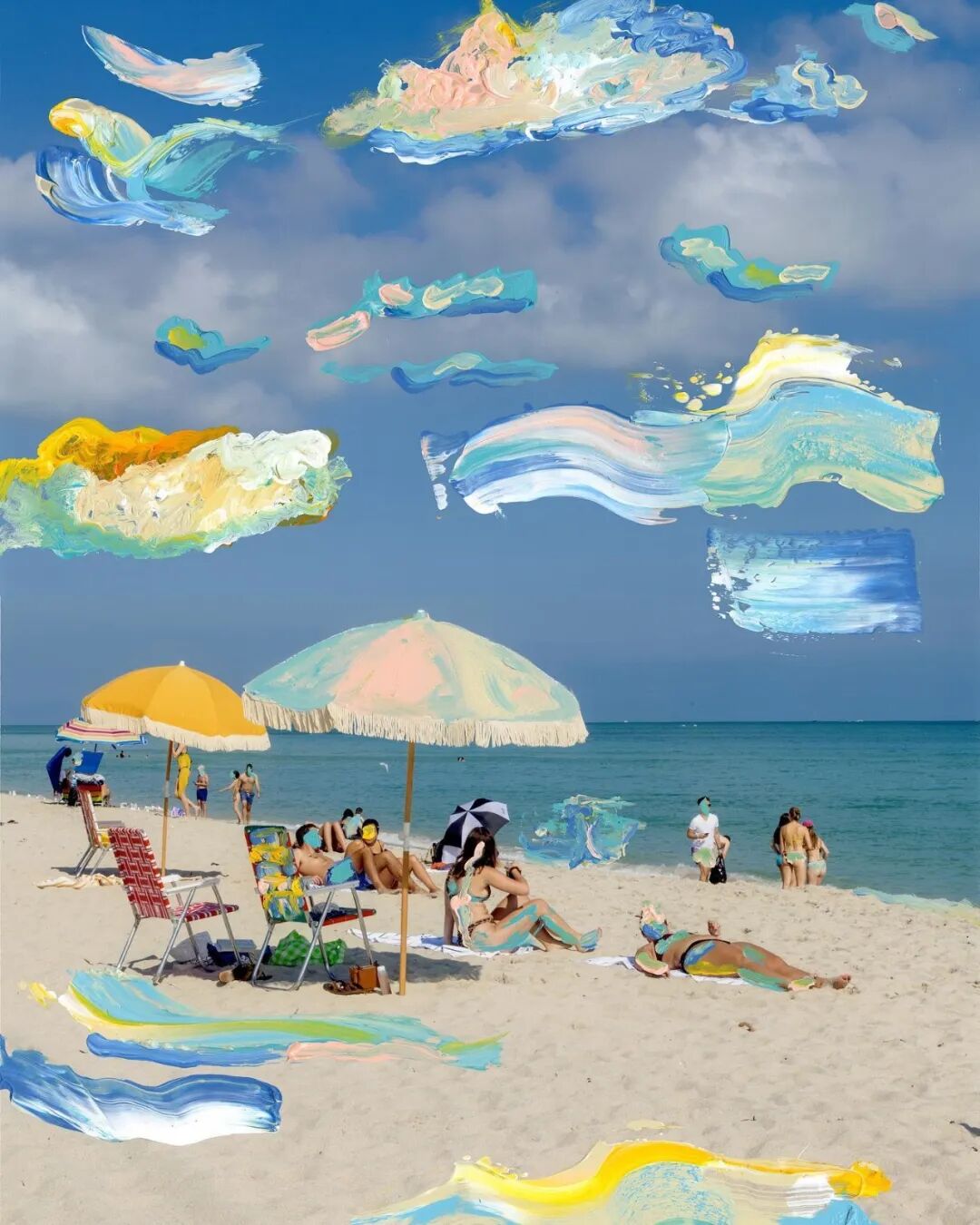 马德琳·格罗斯用极具表现力的笔触,在这些拍摄好的照片中,添加肌理感,有的是在照片中人物的身上、面部增加笔触,也就是,将其中的人物以油画的形式进行重新的绘制,有的则是艺术家在无人的风景照片中,重新创作出油画人物形象,比如在海边画出一个美女,或者画出海水中的波浪感,这些被艺术家重新创造出来的油画人物或场景,都是非常抽象的,与照片中的写实人物和场景形成鲜明对比,展现了一种独特的审美。