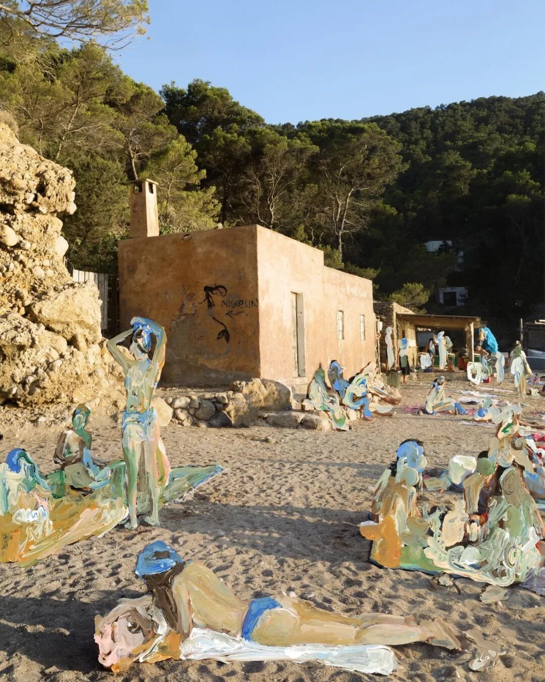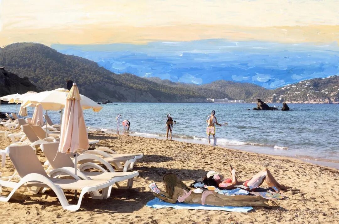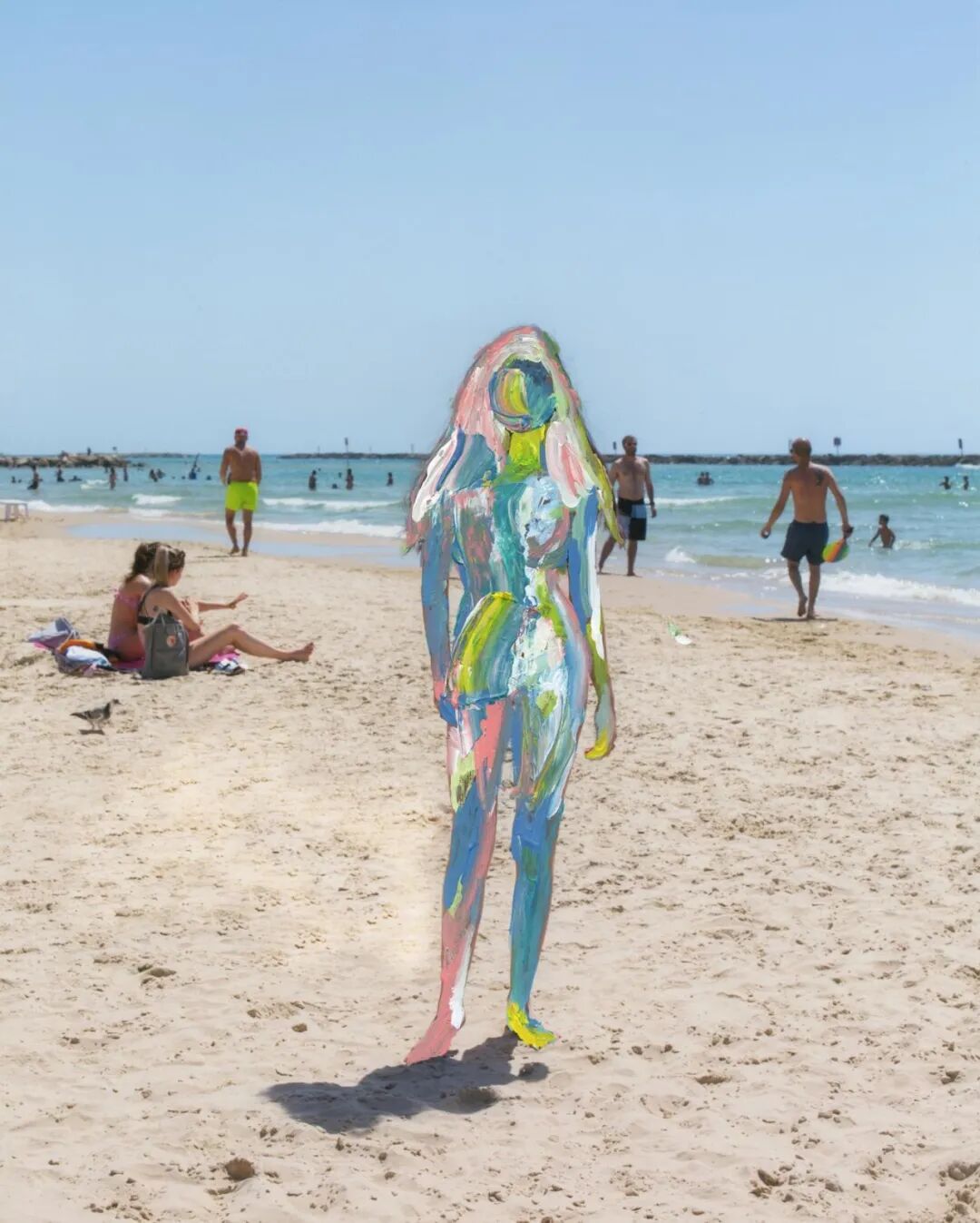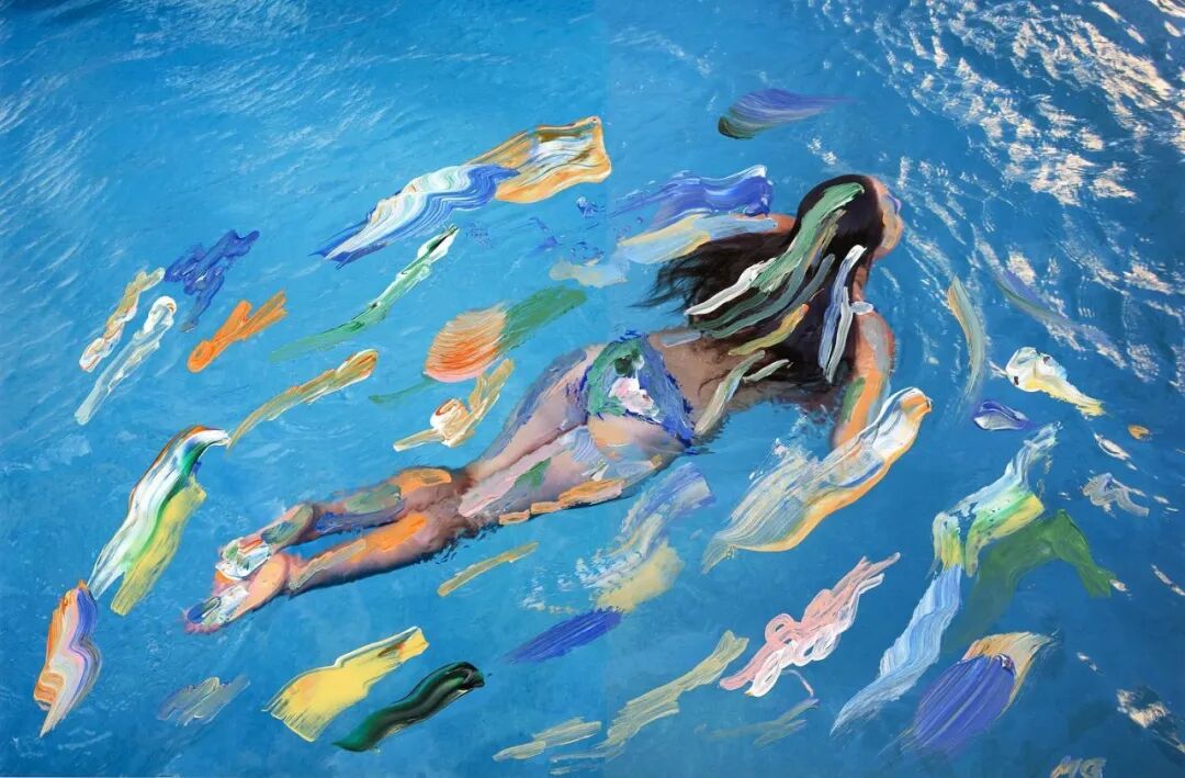 马德琳·格罗斯用极具表现力的笔触,在这些拍摄好的照片中,添加肌理感,有的是在照片中人物的身上、面部增加笔触,也就是,将其中的人物以油画的形式进行重新的绘制,有的则是艺术家在无人的风景照片中,重新创作出油画人物形象,比如在海边画出一个美女,或者画出海水中的波浪感,这些被艺术家重新创造出来的油画人物或场景,都是非常抽象的,与照片中的写实人物和场景形成鲜明对比,展现了一种独特的审美。