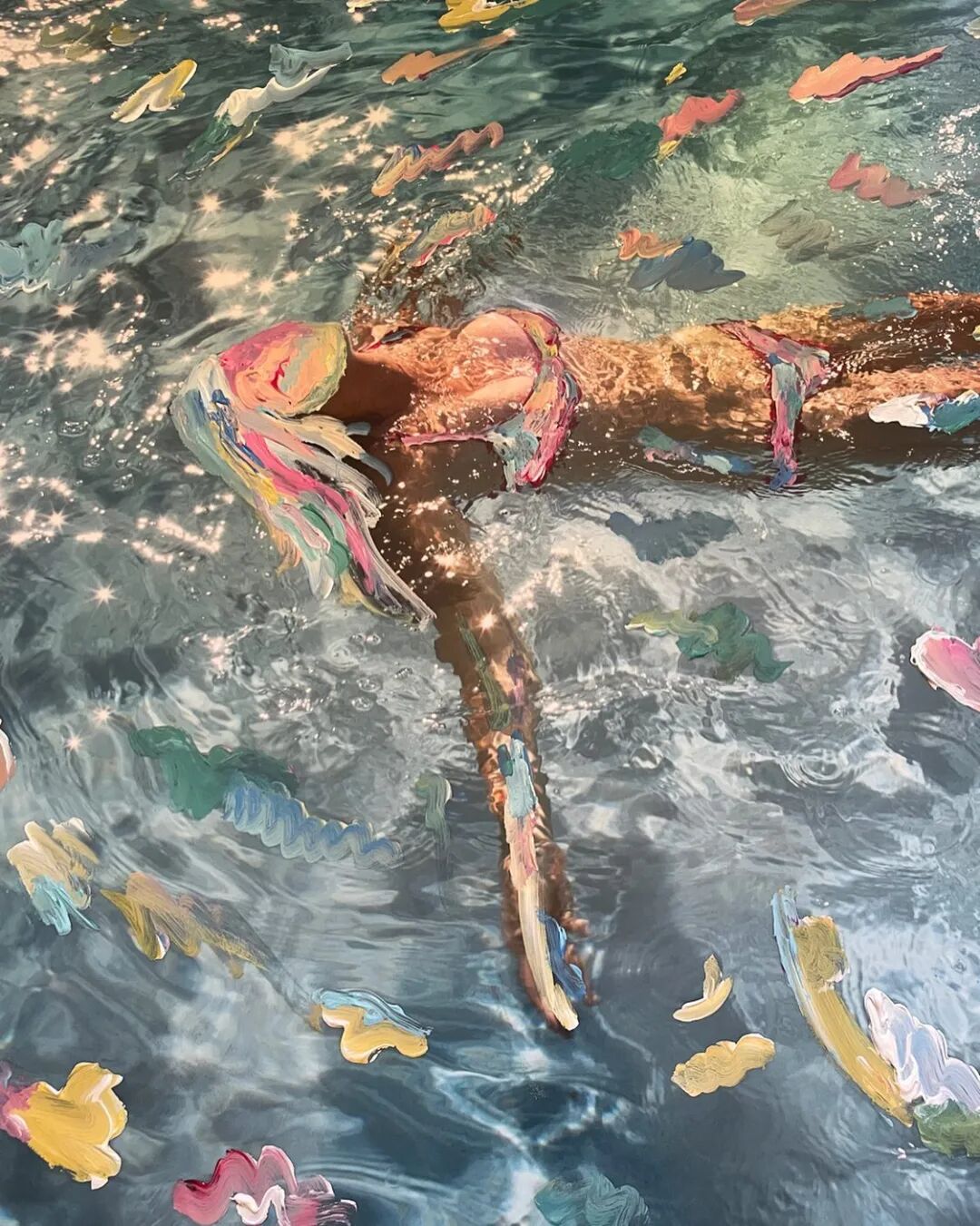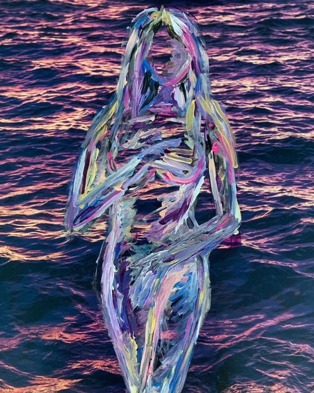 据绛紫艺术了解,马德琳·格罗斯出生于洛杉矶,在大学期间她学习的摄影专业,同时还获得了美术学学士的学位,最开始的时候,她只是尝试用调色刀在照片的印刷品上描绘明亮的笔触,随着审美的提升,她逐渐可以将抽象的人物画在照片的风景上。