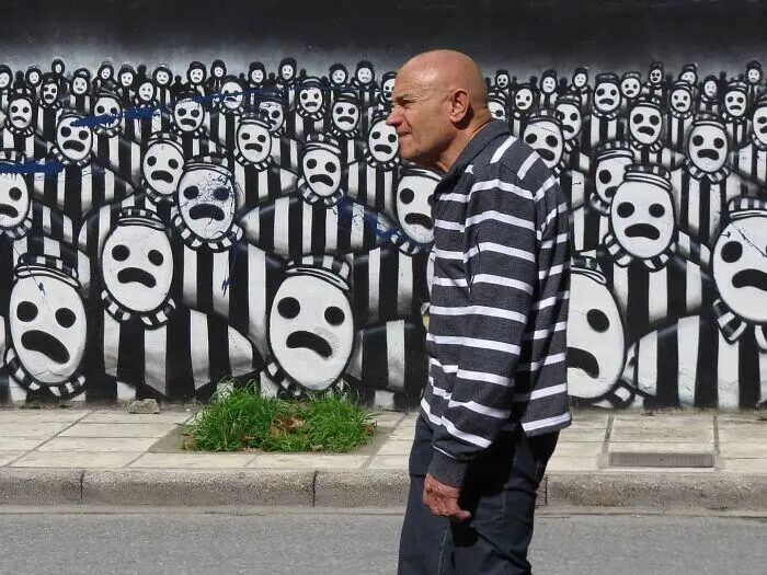 在希腊有一位街头摄影师,他的名字叫安西莫斯·恩塔格卡斯,他常年拍摄街头趣味照片,以极其巧合的图像被人们喜爱,据这位摄影师介绍,拍摄巧合的场景,是一种需要靠运气才能完成的工作,不过,有经验的摄影师会提前选择场地,等待巧合的事件发生,在那一瞬间按下快门。