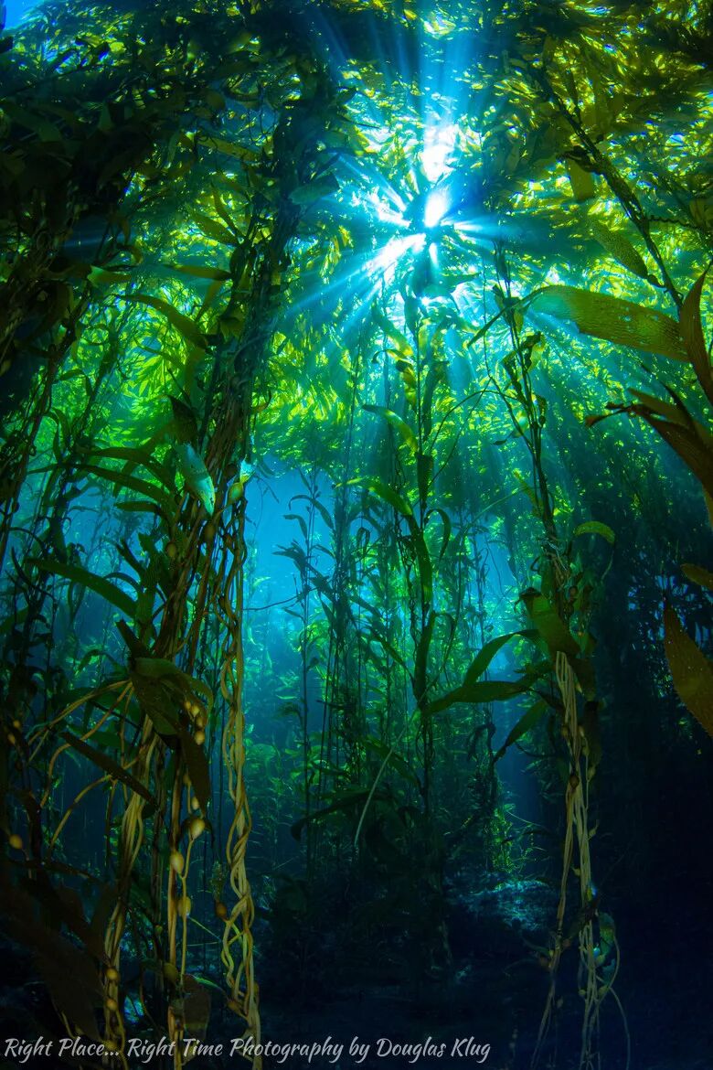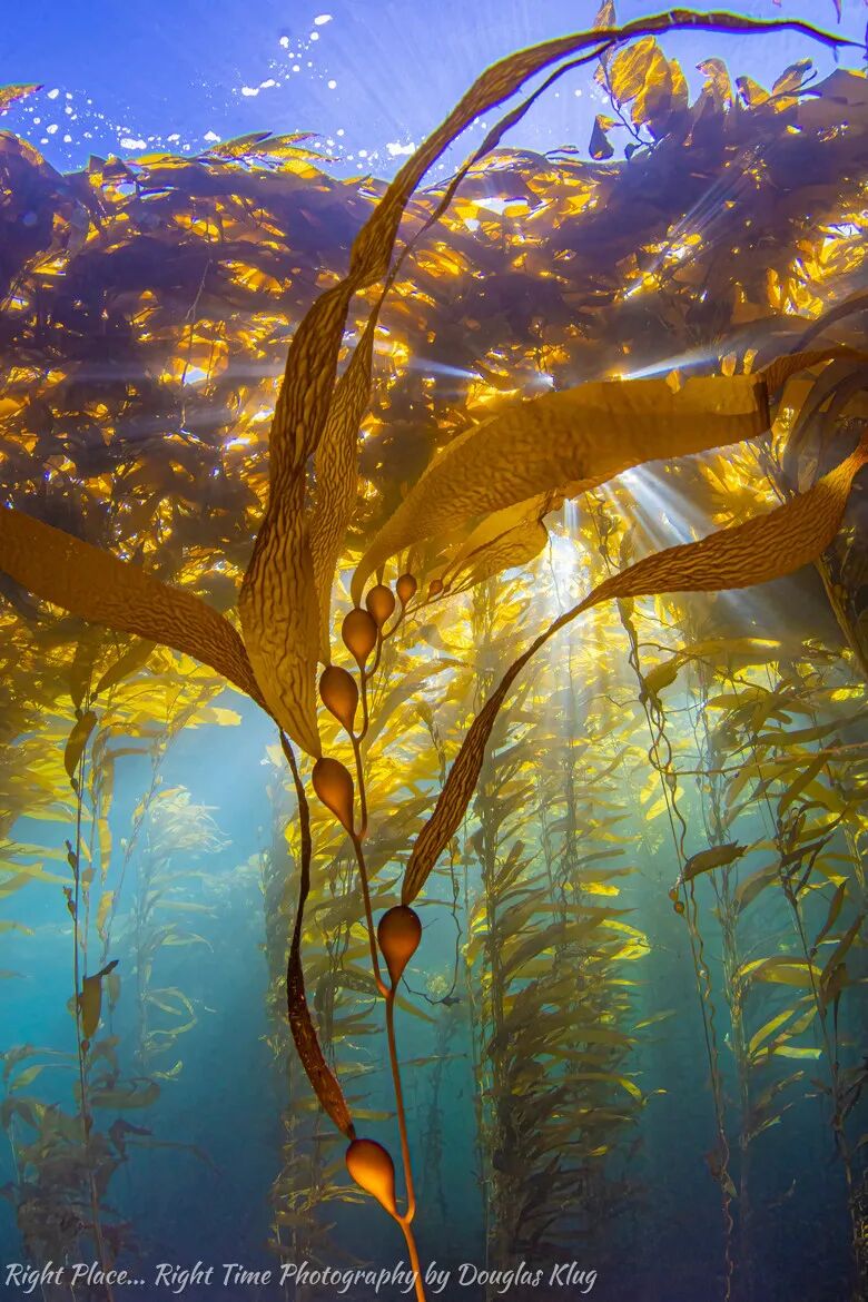 这些漂亮的风景,就是道格拉斯·克鲁格拍摄的海带森林,在这一片区域存在大量的海藻,在水下它们肆意生长,随着海水摇曳生姿,阳光从头顶缝隙中洒落,就像是真的置身于森林中一样,对于道格拉斯·克鲁格来说,这些优雅的海带和海藻,为他摄影提供了无数灵感,帮助他拍摄出精彩的摄影作品。