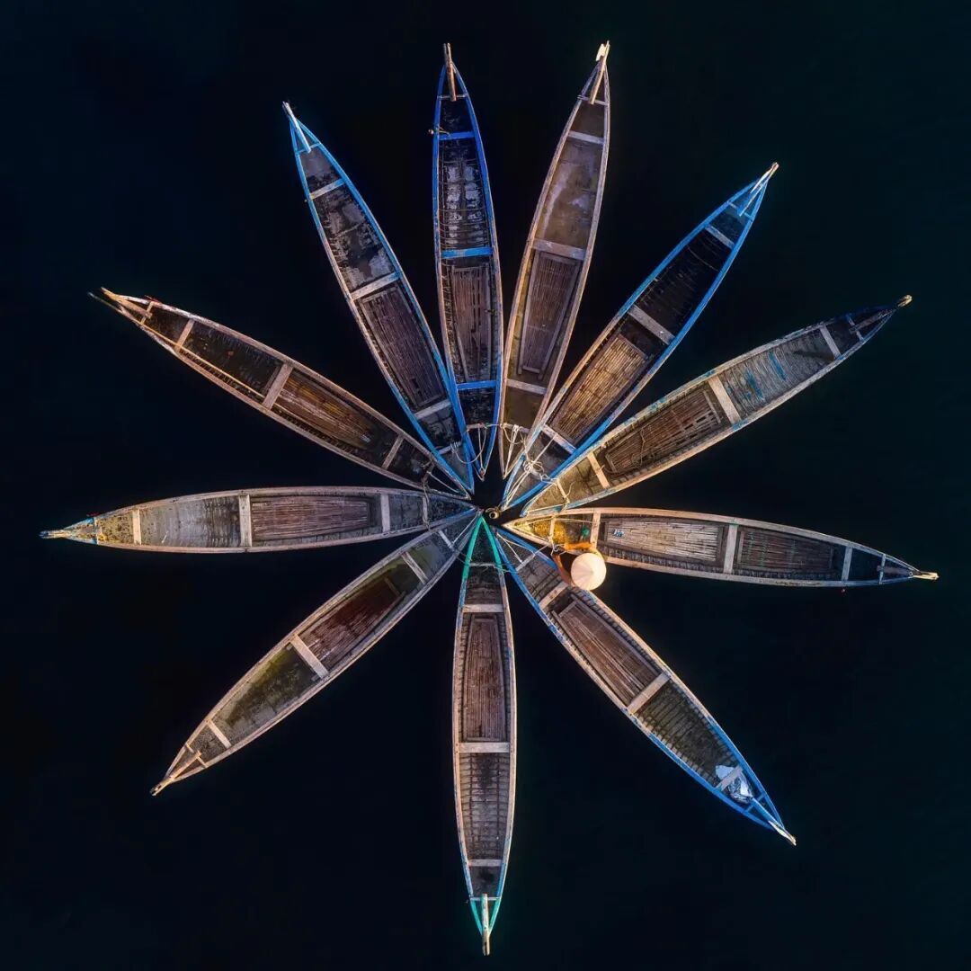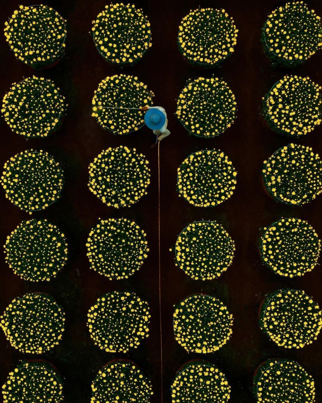 值得一提的是,这位摄影师所拍摄的作品,大多都有农民和渔民的存在,摄像头正对着收获的人,在画面中人类的形象成为了一个点,由这个点向外延伸,整幅画面都充满了节奏和律动感。