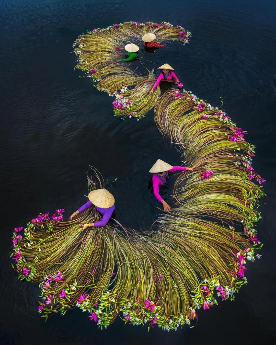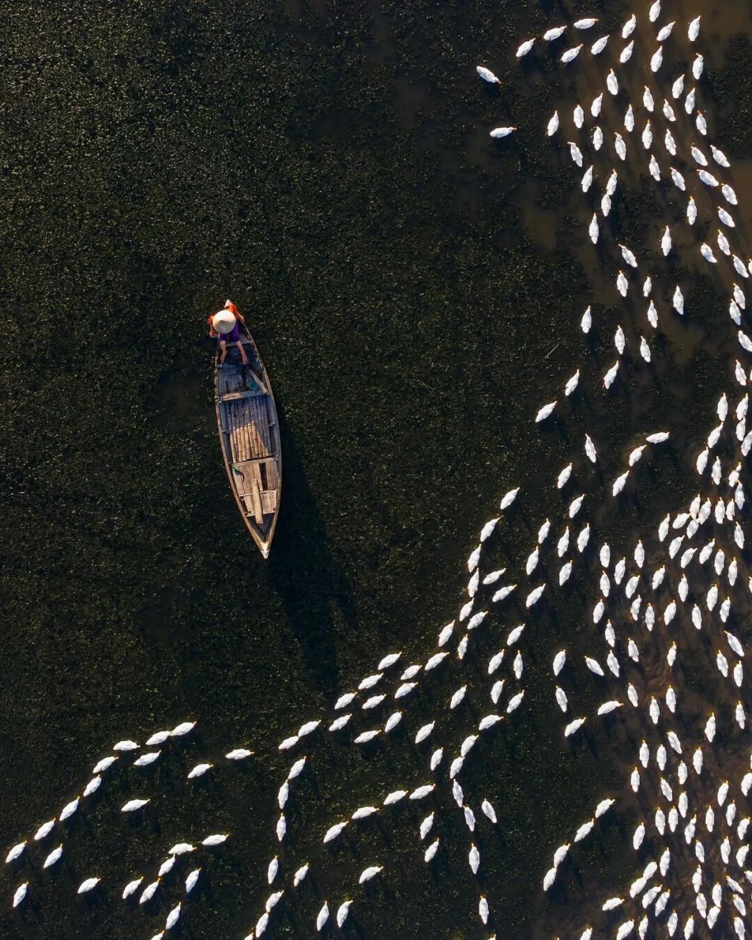 作为一位国际知名的摄影师,很多人都看过范辉忠的摄影作品,只不过对于他的名字并不熟悉,这位摄影师的摄影作品十分具有个人特色,他专注拍摄越南农业场景,像是农田播种、湖泊打渔和收割牧草等等,为了表现唯美的场景,范辉忠喜欢采用航拍和无人机拍摄的方式去呈现这些美景。