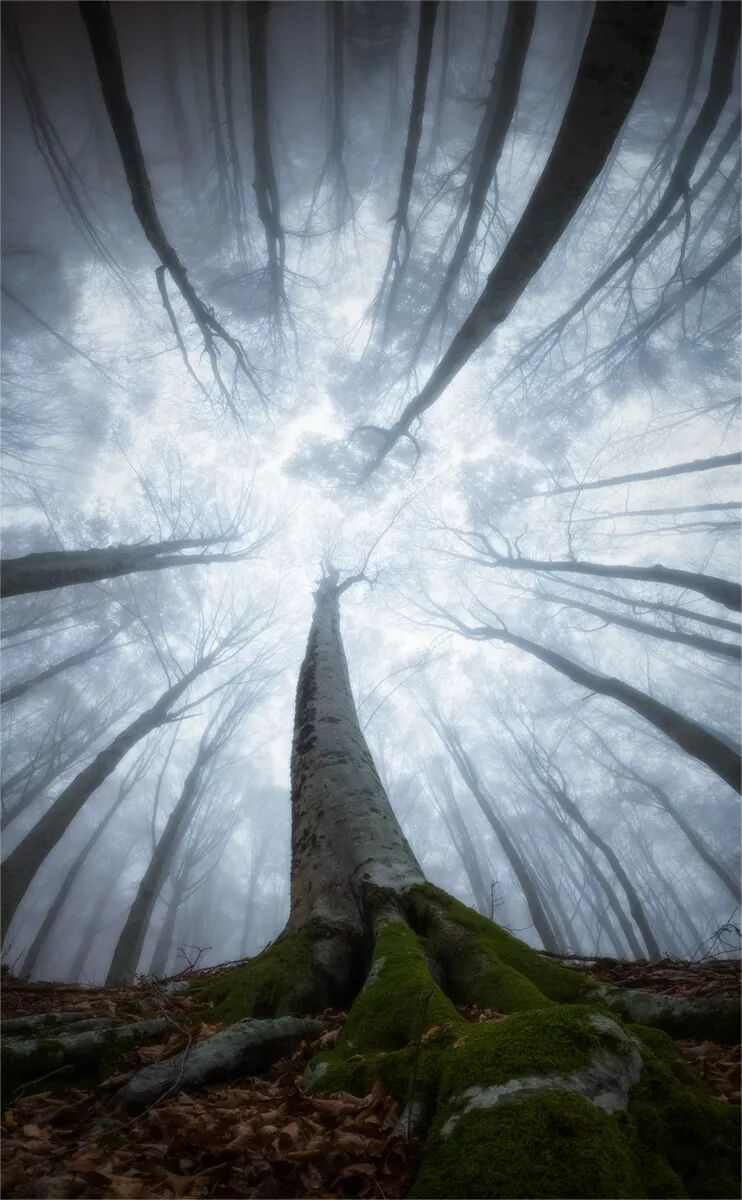 贝切科的这组森林照片,采取从下而上仰拍的方式,记录下一个令人震撼的森林神奇美景,在这样的景色中,任何人都会变得平凡而渺小,沉醉在这充满震撼力的自然美景之中。