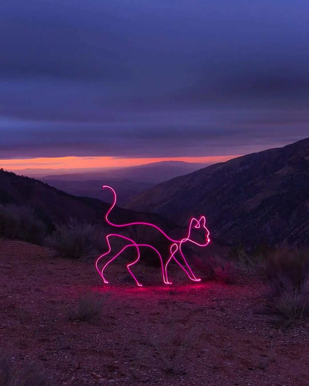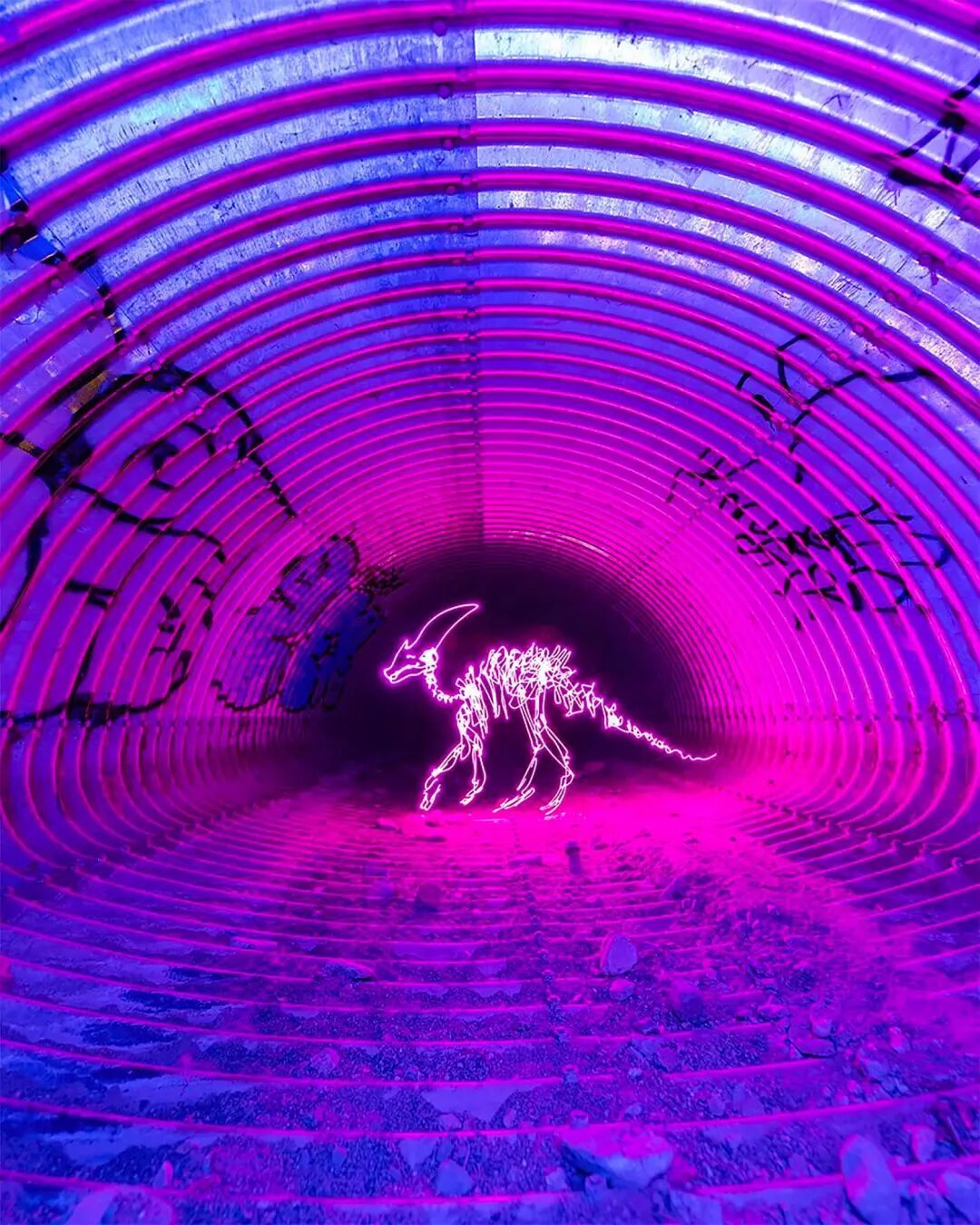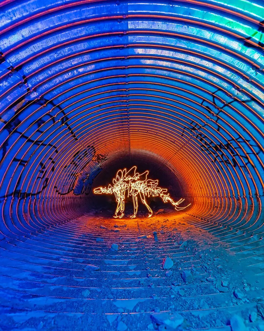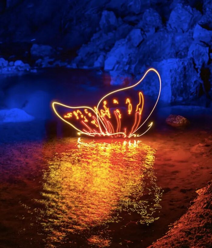 光绘摄影不仅考验摄影师的绘画能力,还十分考验一位摄影师的摄影能力,发光体是创作者的画笔,为绘制的内容选择一个合适的背景,能将光绘画作融入到场景中才行。