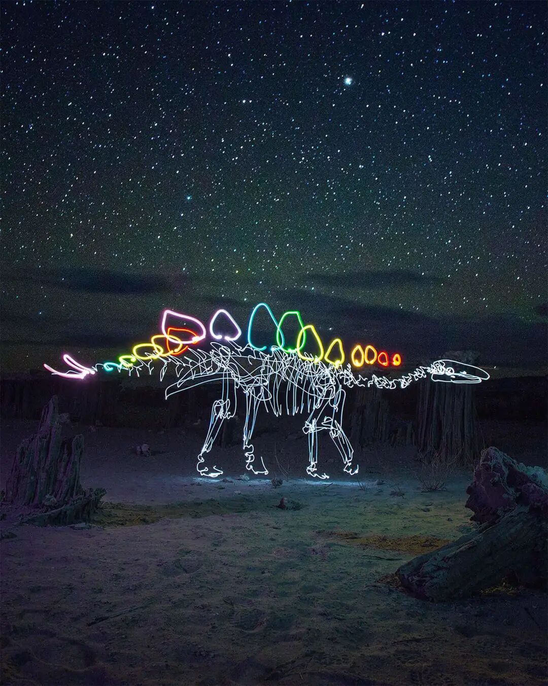 独特的光绘摄影,受到很多人的欢迎,今天,就让我们一起再来认识一位光绘摄影师,他的名字叫达伦·皮尔逊,擅长长曝光摄影和插画绘制,绘制的内容也十分丰富,例如:恐龙、狐狸、蝴蝶和汽车等等形象,当速写线条变成一道光线,在空中勾勒出一幅幅画作,无论何种内容都给人一种唯美浪漫的感觉。