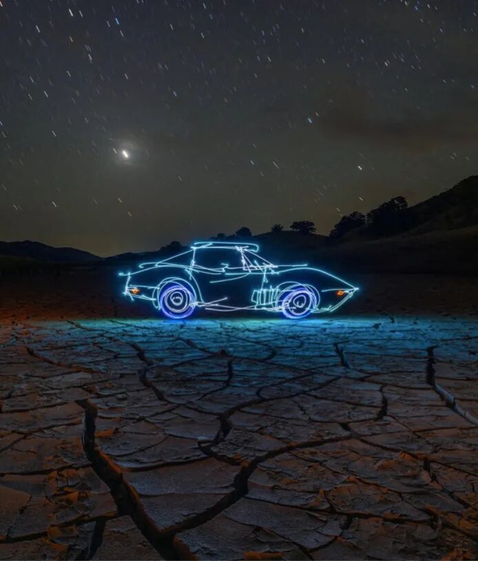 光明与黑暗相对应又互相成就,光绘艺术家们正是利用了这一点,在傍晚和深夜中,使用发光体在空中绘制图案,然后,利用摄影中的长曝光技术,将绘制的图案保留下来。